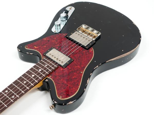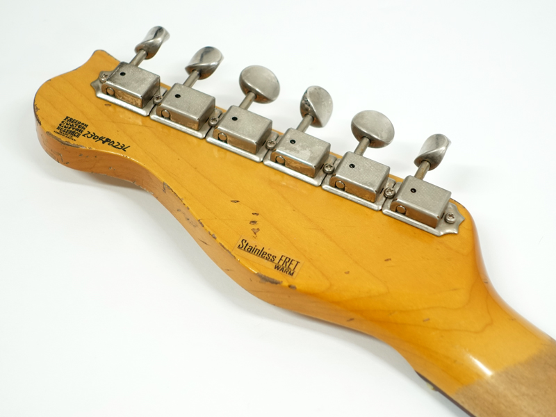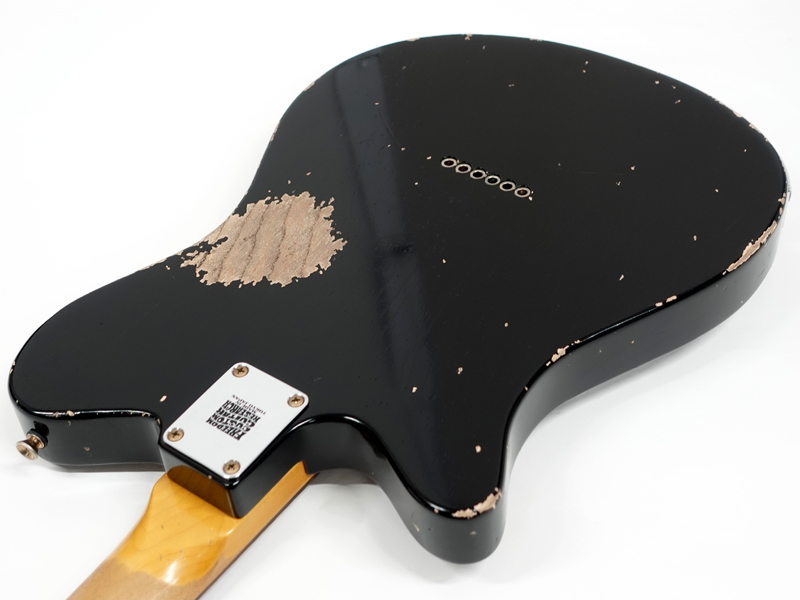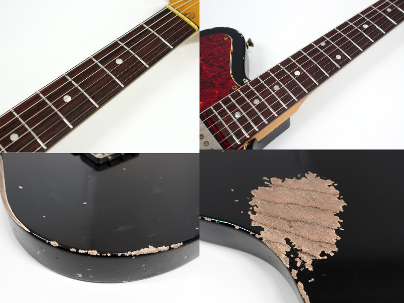 フィニッシュにオールニトロセルロースラッカーのブラックをセレクトし、フルレリック仕様にてオーダーしました。レリック具合に関してはFCGRの熟練の塗装職人のセンスに「お任せ」する形で上がってきましたが、リアルなレリックの剥げ具合や大胆に剥げたバックから除くアッシュの杢目など雰囲気抜群の仕上がり。