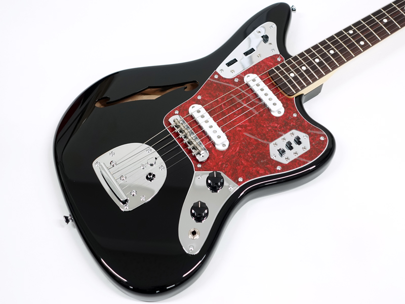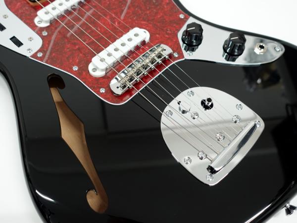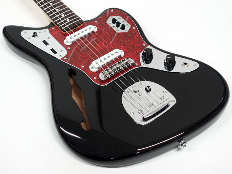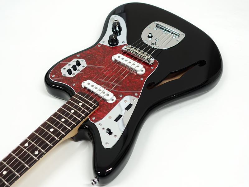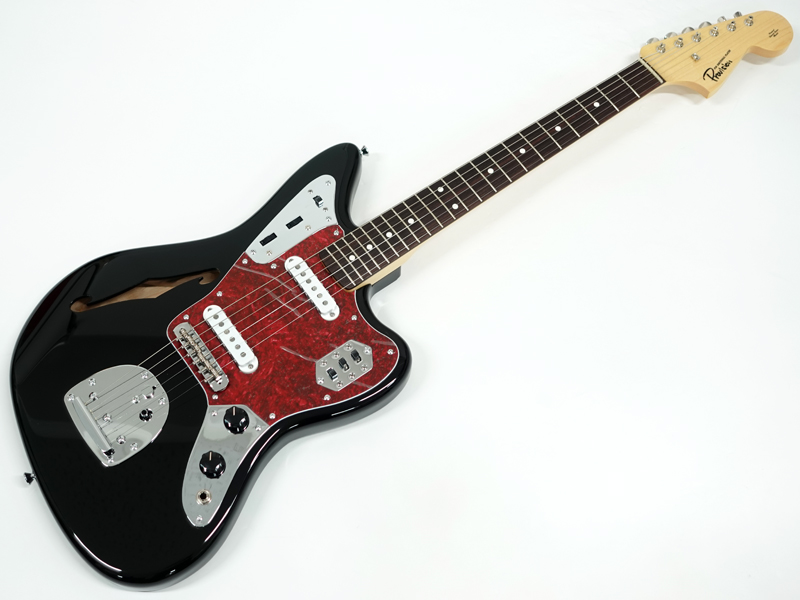 本機は当店オーダーモデルとなるプロビジョンでは珍しいジャガーモデル。ということで一風変わったセミホロウシンラインボディ仕様のジャガーが完成しました。