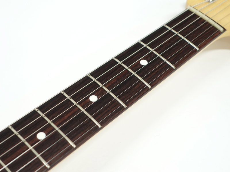 非常に軽量な仕上がりとなったセミホロウボディにはアルダーを採用、メイプルネック、ローズウッド指板。