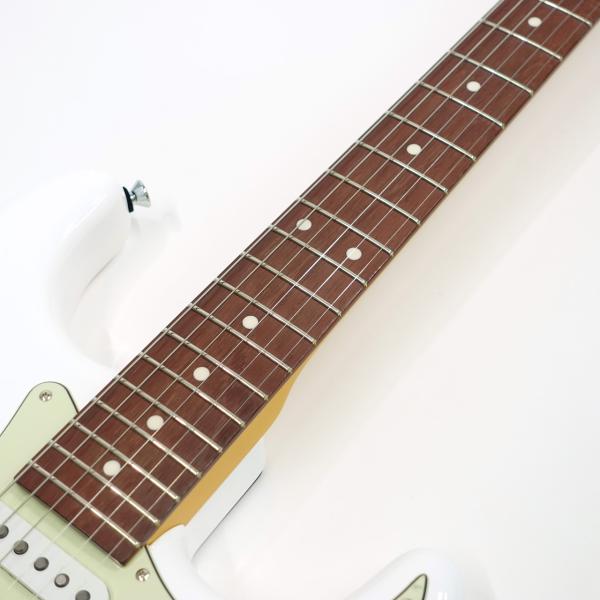 アルダーボディ、メイプルネック、250mm指板ラジアス、ロングスケール採用。