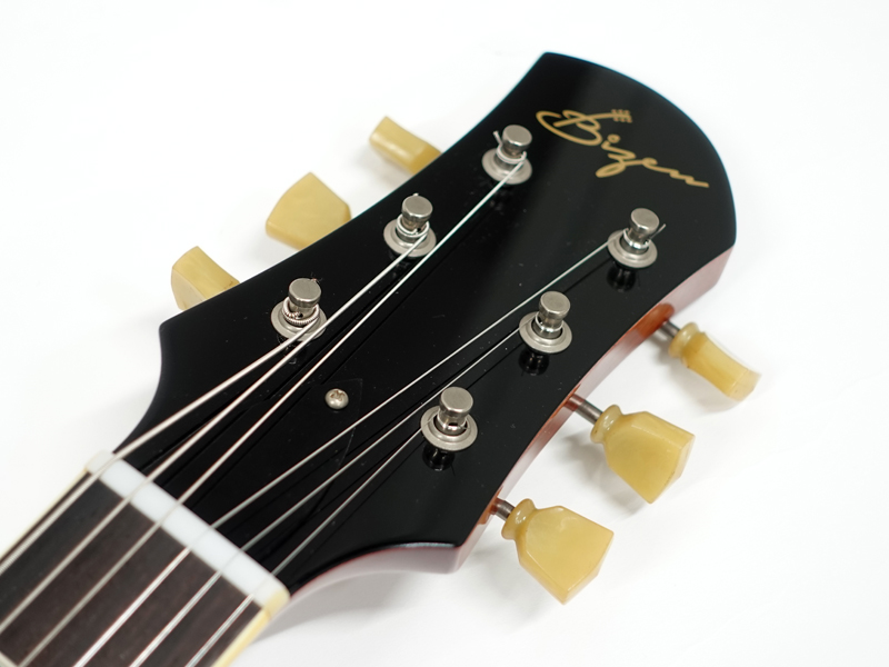 これにより特にハイポジションの1弦から4弦へと弦移動していく様なシビアなソロプレイにおいてスムーズなフィンガリングと豊かなサスティンを確保してくれます。独特なカーブを持つボディバックコンターやハイポジションのヒールレス加工といった細やかな配慮もBizenの特徴ですが個人的にはこのネック仕上げによる弾きやすさに感動しました。この弾き心地はBizenでしか体感できません。ギタープレイにおいて新たな境地を体感いただけると思います。