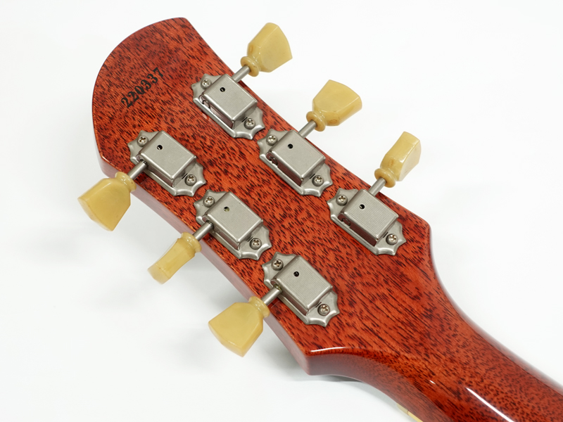 そして、そのトーンを余すことなく拾い上げるホンジュラスマホガニーバック、そしてそのトーンをよりリッチな響きへ昇華させるハードロックメイプルトップの鉄壁のコンビネーションです。