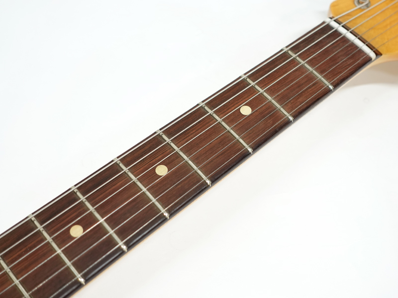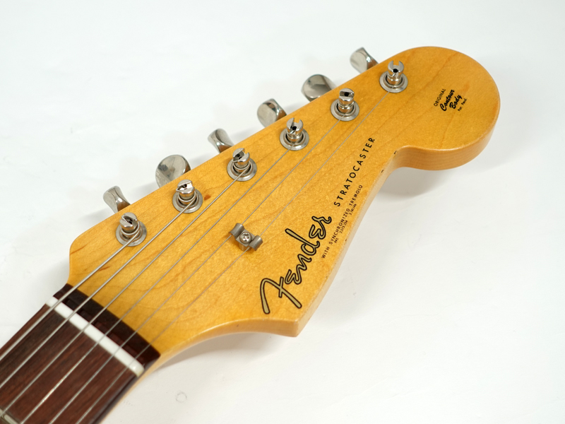 本機はボディに2ピースアルダー、 60Style Oval "C"シェイプの厳選されたメイプルネックにAAAグレードの濃色を持つローズウッドをスラブ貼りで採用した現在もストラトキャスターの基本と言える60年のスペックを再現したカスタムショップ製の日本限定セレクションモデルです。