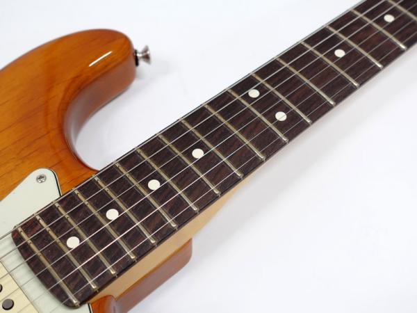アルダーボディ、メイプルネック、ローズウッド指板。サテンフィニッシュのネックや