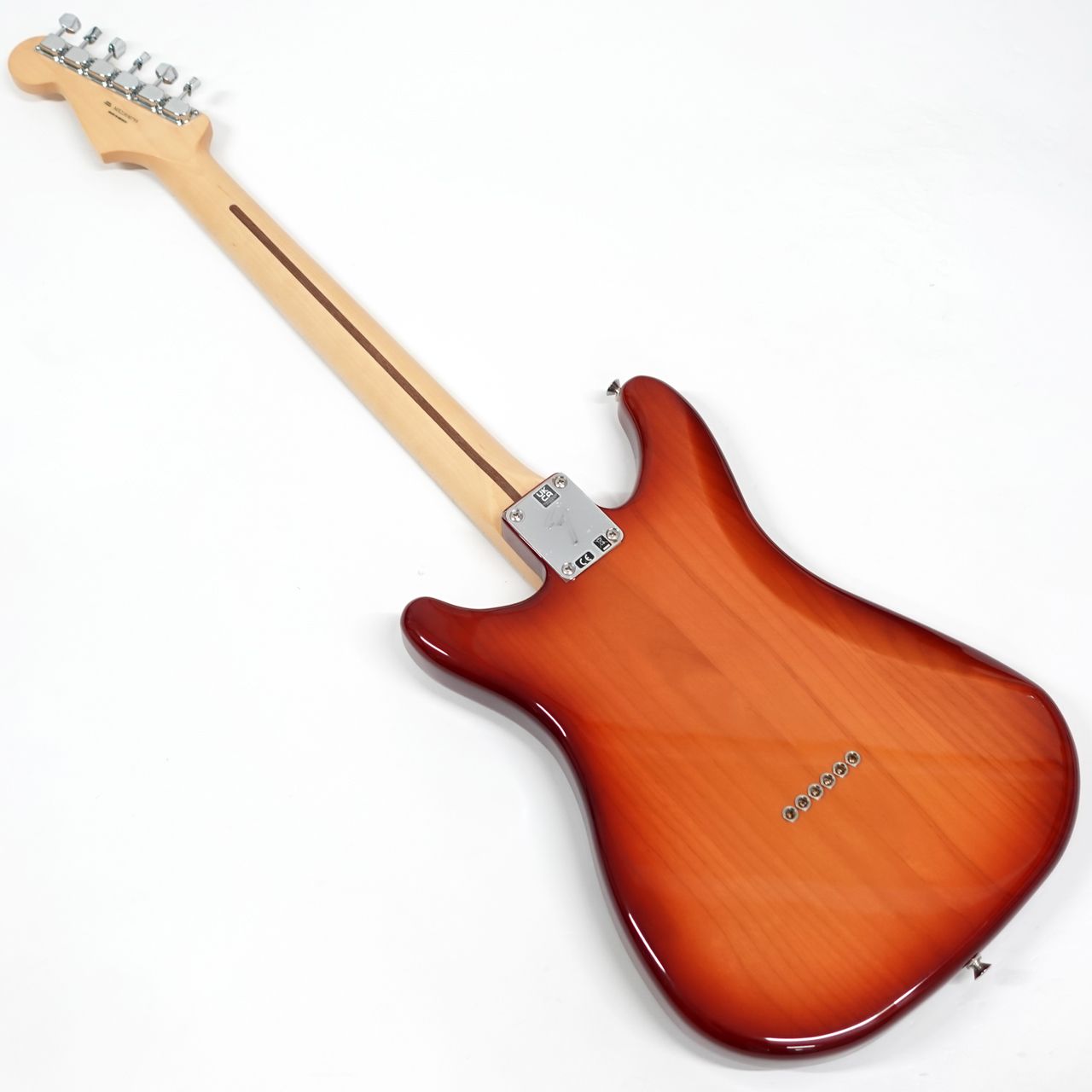 アルダーボディ、メイプルネック、メイプル指板。Modern "C”シェイプネックや9.5インチラジアスの指板などはPlayerシリーズらしい現代的な演奏性です。