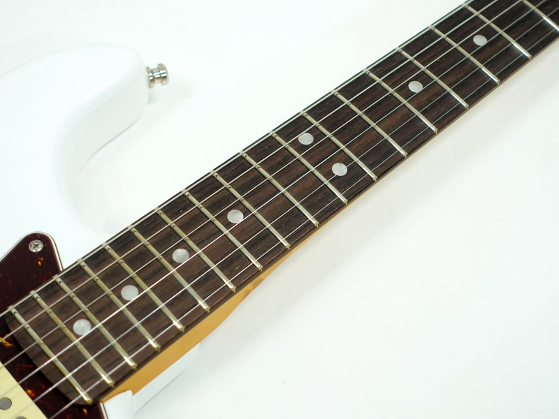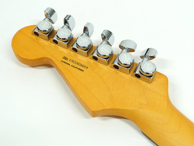 Ultra Noiseless Vintage Stratピックアップ、S-1スイッチ、ロッキングペグ、ヒールカットジョイントなど最新のアイデアを盛り込み高い完成度のUSAストラトが完成しています。ミディアムジャンボフレットで演奏性も良くハイポジションもスムーズに演奏出来ます。