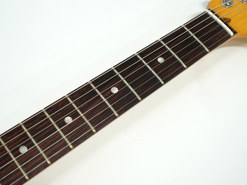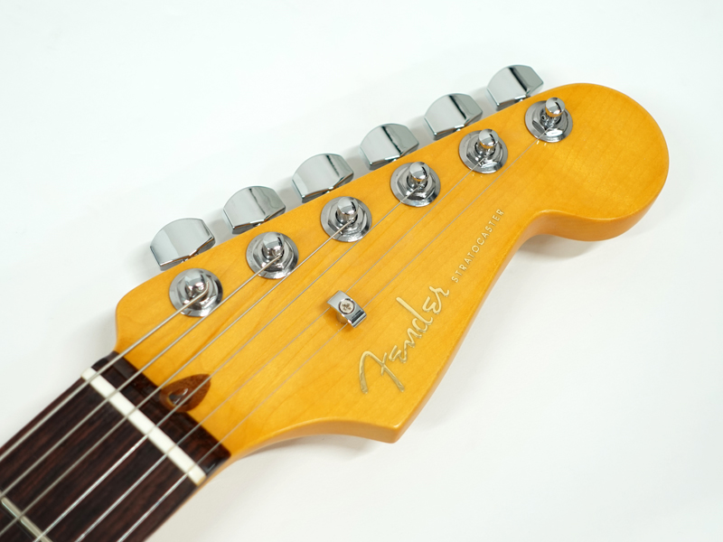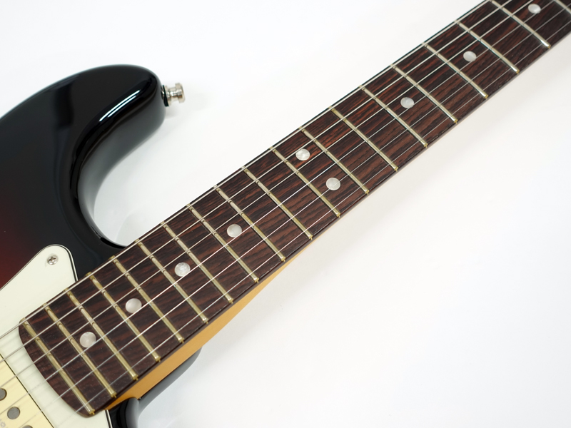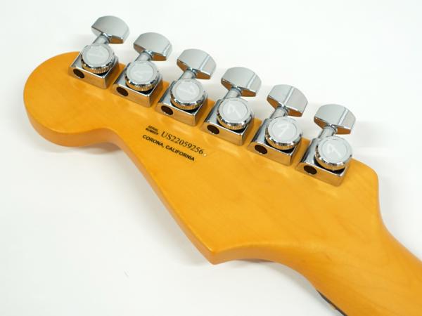 Ultra Noiseless Vintage Stratピックアップ、S-1スイッチ、ロッキングペグ、ヒールカットジョイントなど最新のアイデアを盛り込み高い完成度のUSAストラトが完成しています。ミディアムジャンボフレットで演奏性も良くハイポジションもスムーズに演奏出来ます。