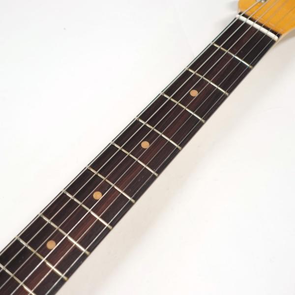 Pure Vintage '63 Telecasterピックアップ、3スレッデッドスティールサドルブリッジ、7.25インチラジアス指板を配した快適な1963"C"シェイプメイプルネックを装備したAmerican Vintage II 1963 Telecasterは1963年当時に生産されてたオリジナルモデルの真髄といえるトーンとフィーリングを再現しています。本モデルは12フレットのポジションインレイの間隔が若干狭いクレイドットといった細部にまでこだわり抜いて再現されています。