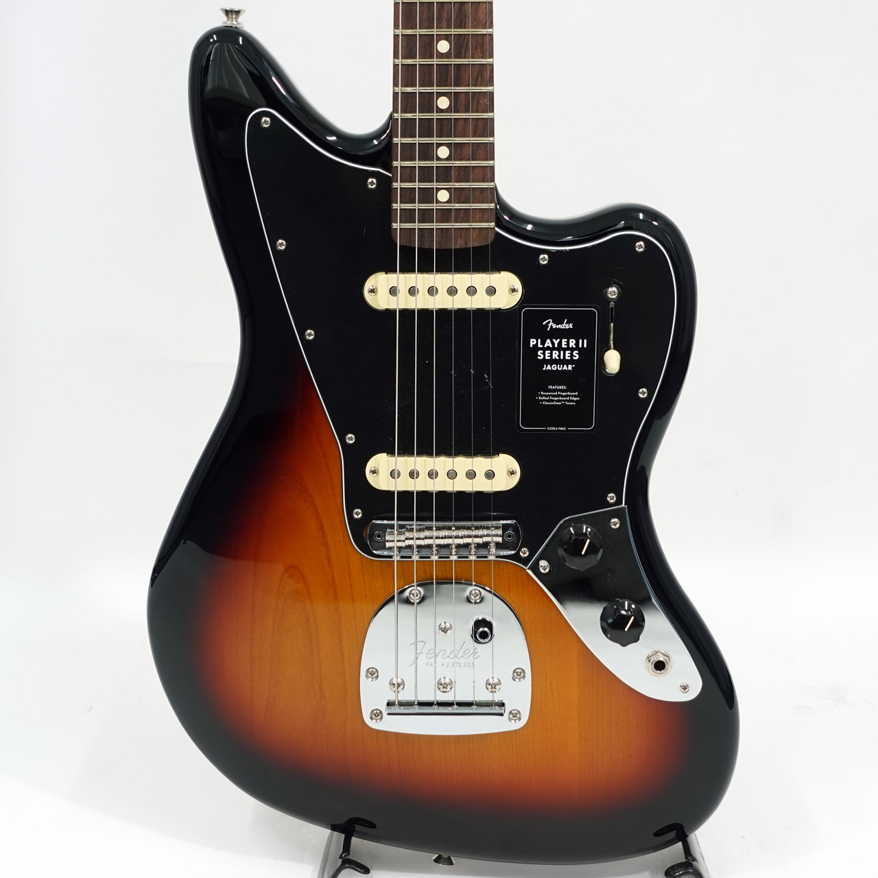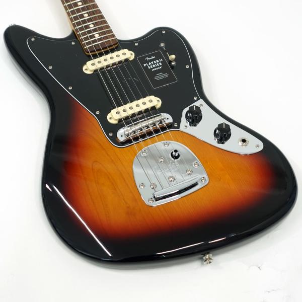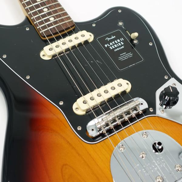 クラシックなトーンウッドであるアルダーボディを採用したPlayer II Jaguarは、伝統的なフェンダーフィニッシュ、またはフェンダーのカラーアーカイブから発掘され、本シリーズで初採用となる新フィニッシュなど、幅広いカラーの選択肢をご用意しています。Player Series Alnico V(ブリッジ)とAlnico II(ネック)Single-Coil Jaguarピックアップからはクリスタルのように澄み渡ったネックポジションのクリーントーンとバイト感に溢れるブリッジポジションのサウンドが得られます。3ウェイブレードスイッチにより、多彩なサウンド設計が可能です。フローティングトレモロと、アップグレードされたMustangサドル付き6サドル式Jaguarブリッジと、ClassicGearチューニングマシンによりチューニングの安定性と豊かな表現力が確保され、無限のサウンドの可能性を追求できる柔軟性を備えています。