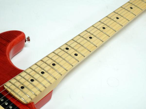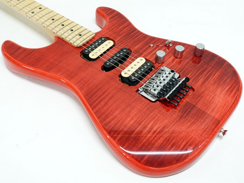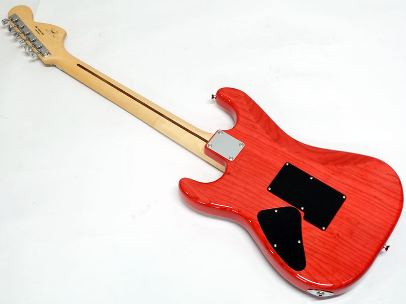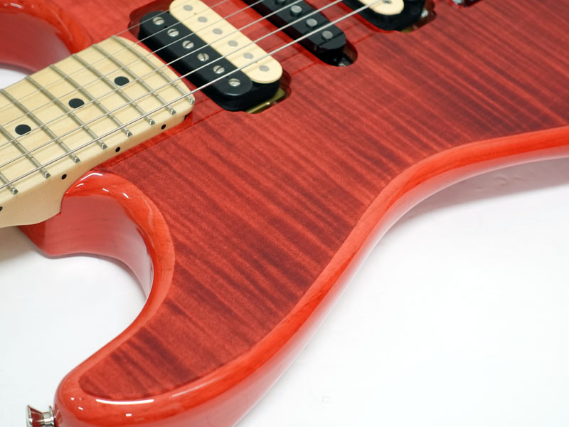 鮮やかなトランスピンクカラーに塗装された目を惹くフレイムメイプルトップのアッシュボディはノーピックガード仕様で、洗練されたエレガンスをエンハンスします。