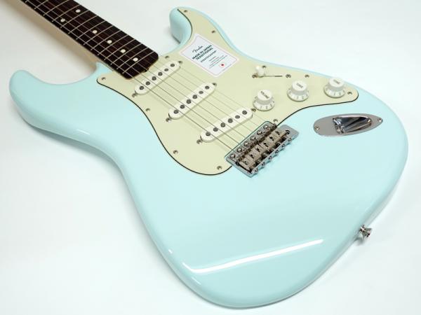 マイナーチェンジで新しくなったトラディショナルシリーズこちらのモデルはUシェイプのメイプルネック、ローズウッドフィンガーボードといった60年代のストラトキャスターのスタイルを持ちながら癖のないバスウッドボディを採用したモデル。