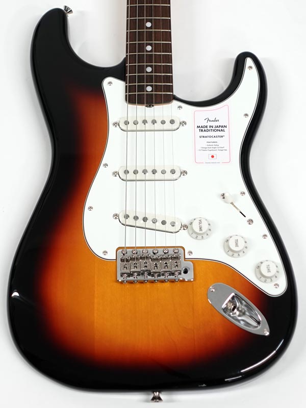 そしてにラージヘッドにモダンロゴ、Fチューナーを搭載し68年以降のストラトキャスターを再現しています。ヴィンテージタイプのフレットを装備した9.5インチラジアスの"Uシェイプ”メイプルネックがTraditionalシリーズならではのクラシカルな演奏性を提供します。
