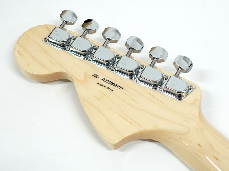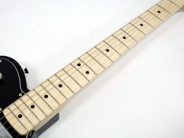 独特の形状をもつ黒のピックガード、そしてそれぞれのピックアップに対応したヴォリューム、トーンのつまみが計4つセッティングされており独特のルックスを持ち人気の一台です。