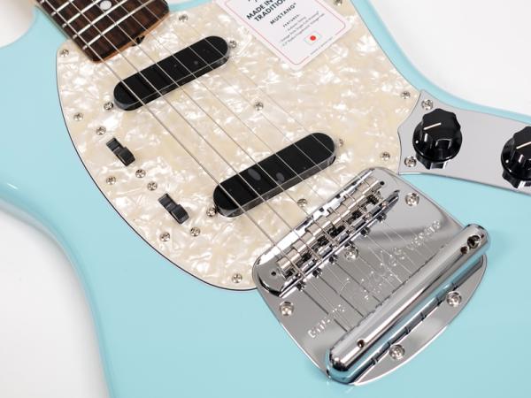 ピックアップにはSingle-Coil Mustangを採用。独特のクリアなサウンドが魅力のモデルで、ショートスケールと相まって他のギターでは真似できないトーンです。