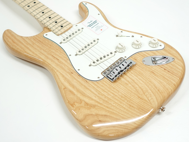 マイナーチェンジで新しくなったトラディショナルシリーズ本モデルはアッシュボディにメイプルフィンガーボード、ラージヘッドという70年代の仕様をもつモデル。