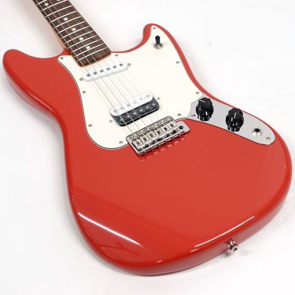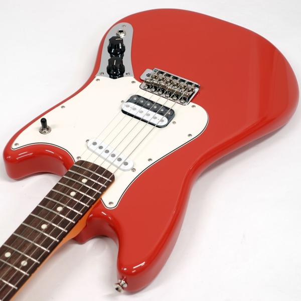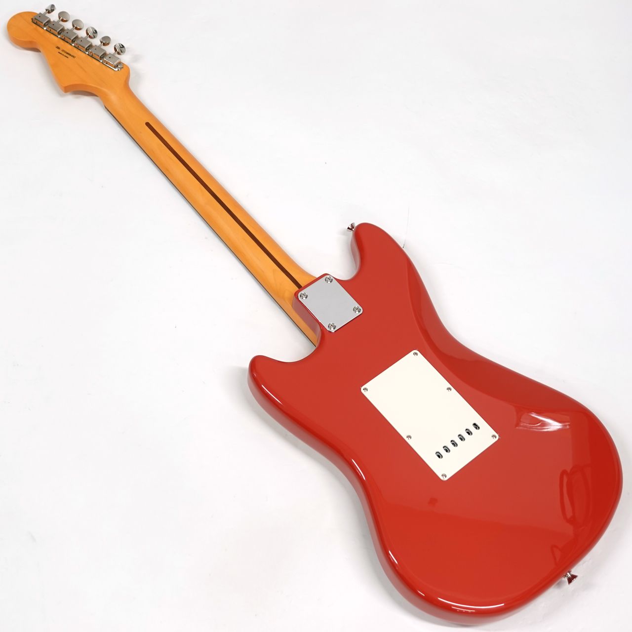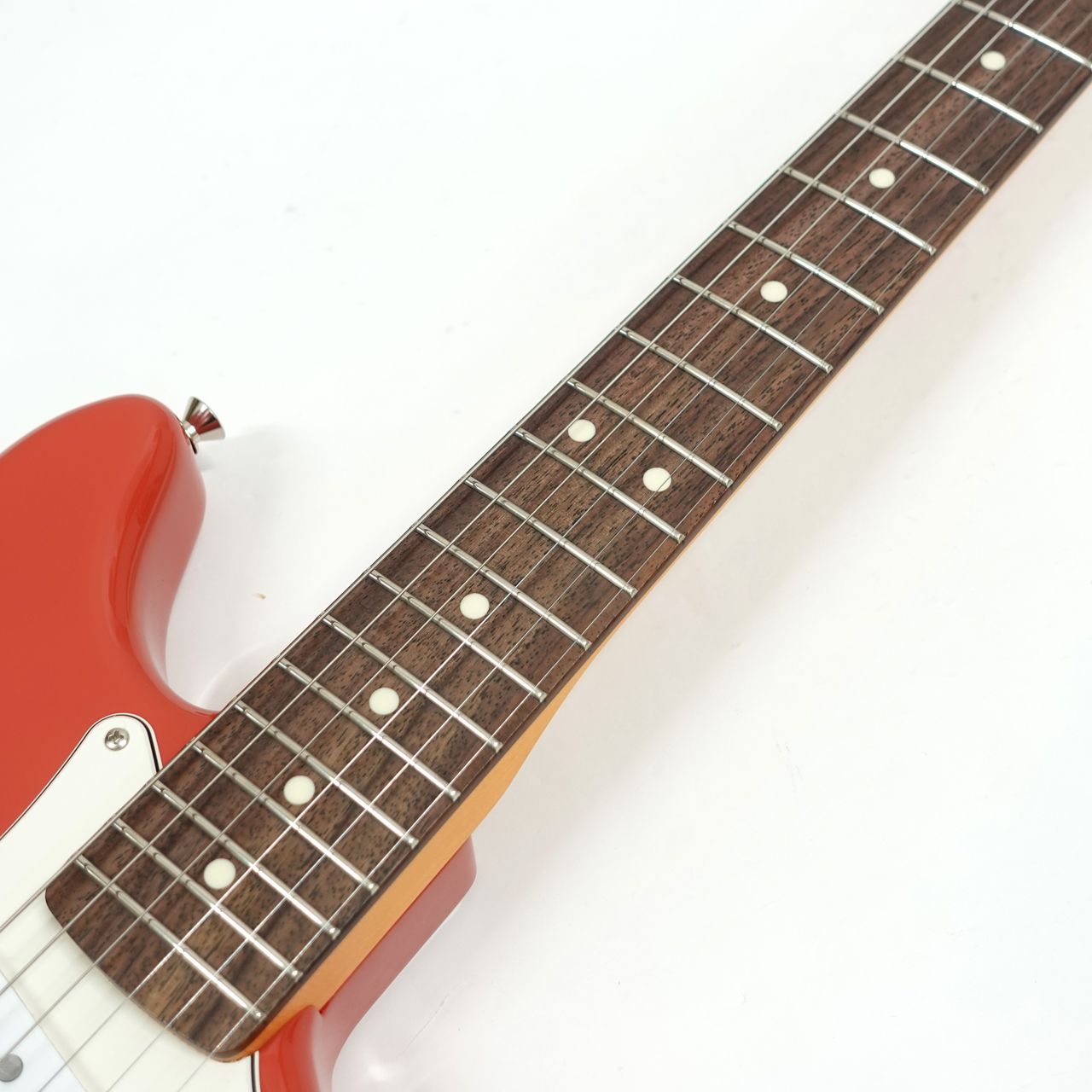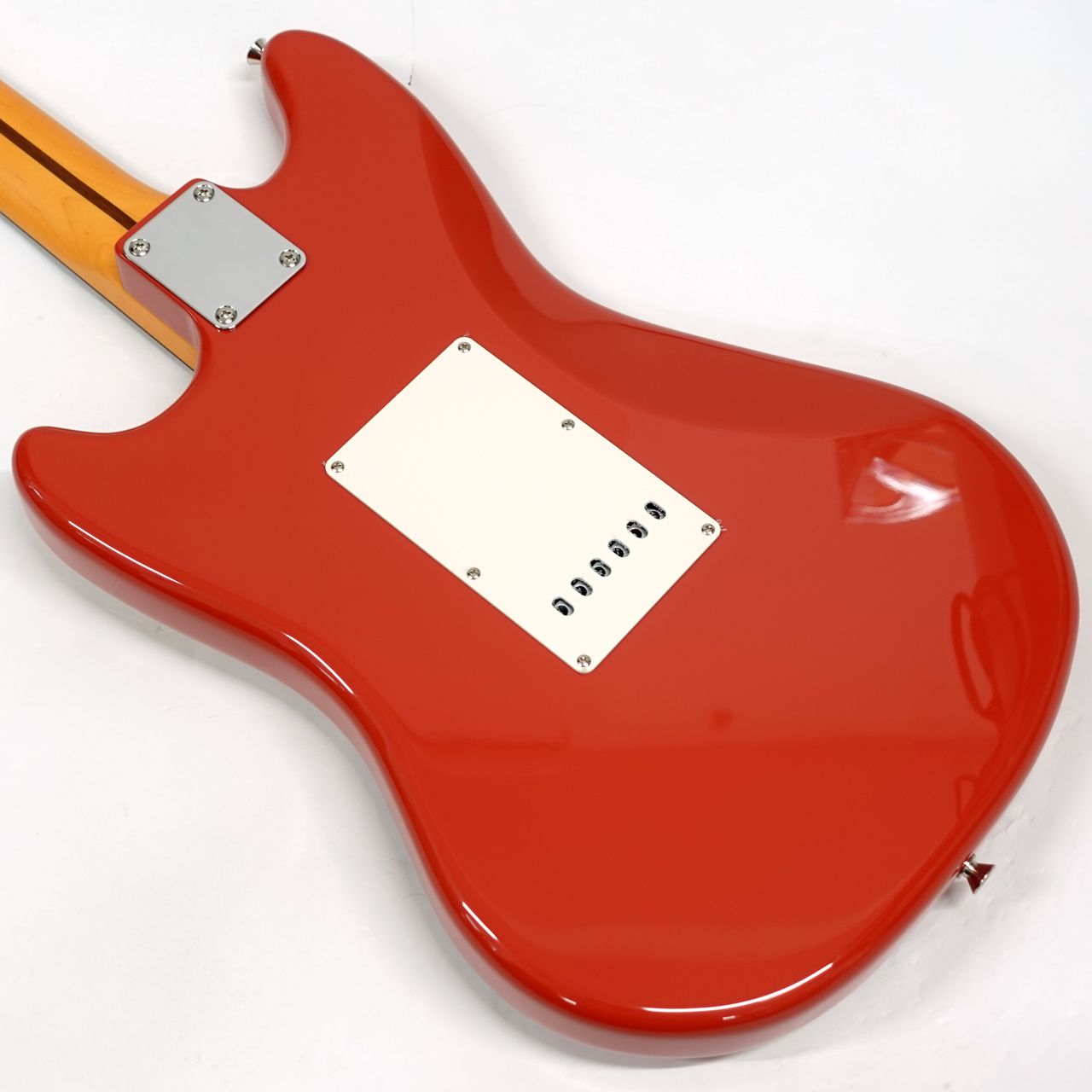Mustangと同じく小ぶりなオフセットボディシェイプに24.75インチのミディアムスケールを採用しテンション感を確保。更にStratocasterに搭載されるヴィンテージタイプのトレモロユニットを採用し安定したアーミングを可能としたハイブリッドスタイルの1本。