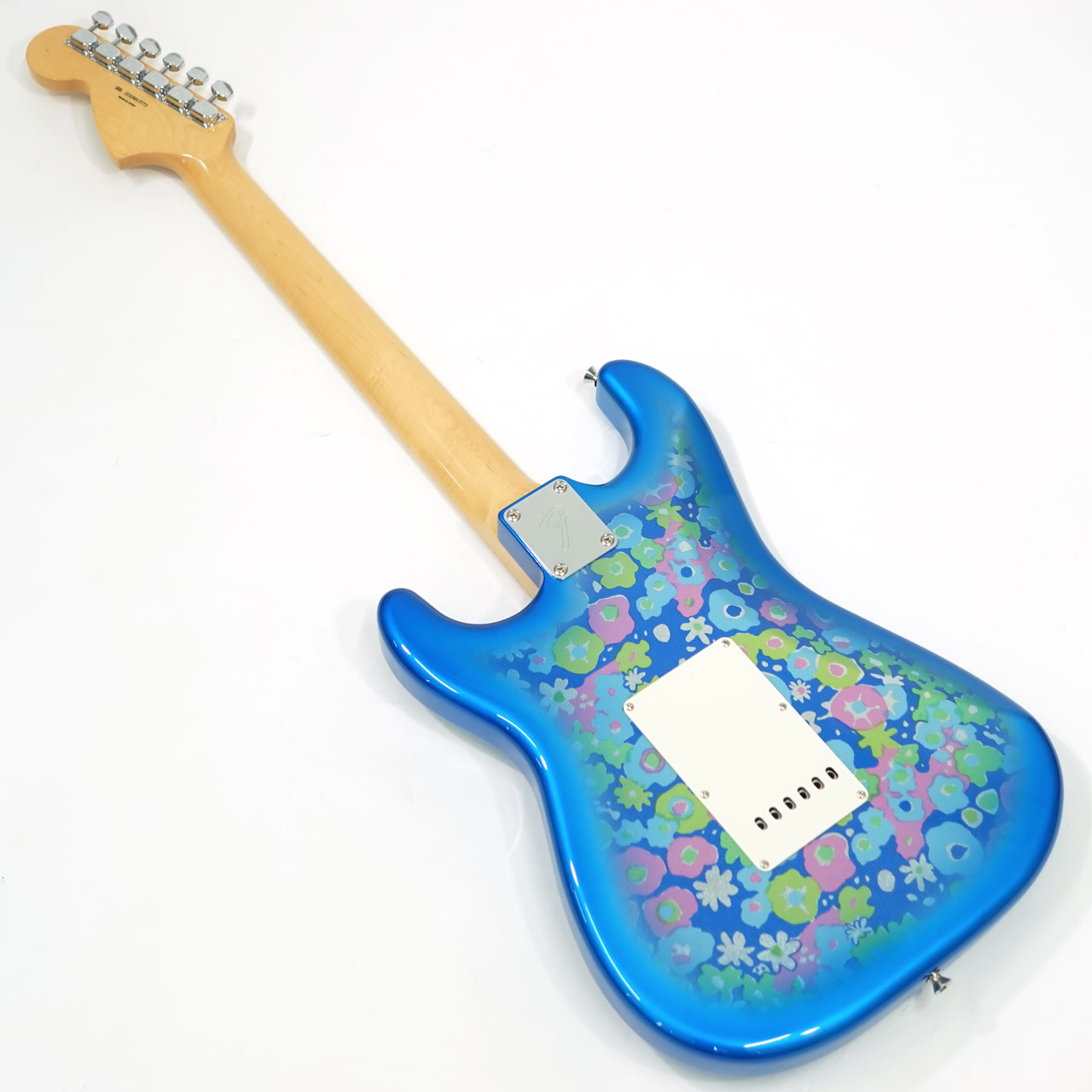 Made in Japan Limited Stratocaster Blue Flowerは、Blue Flowerのシートを貼り付けた、グロスフィニッシュのアルダーボディを採用。