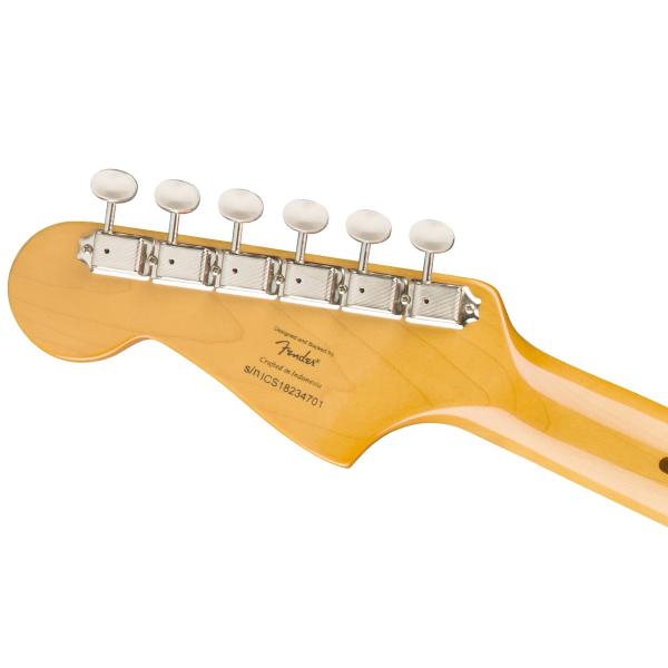 そしてCシェイプのネックグリップ、9.5Rの指板やNarrow Tallのフレットなど現在のフェンダーの弾き心地を採用しています。トラスロド調整はヘッド側から行えるので日頃のネックメンテナンスもラクチンです。