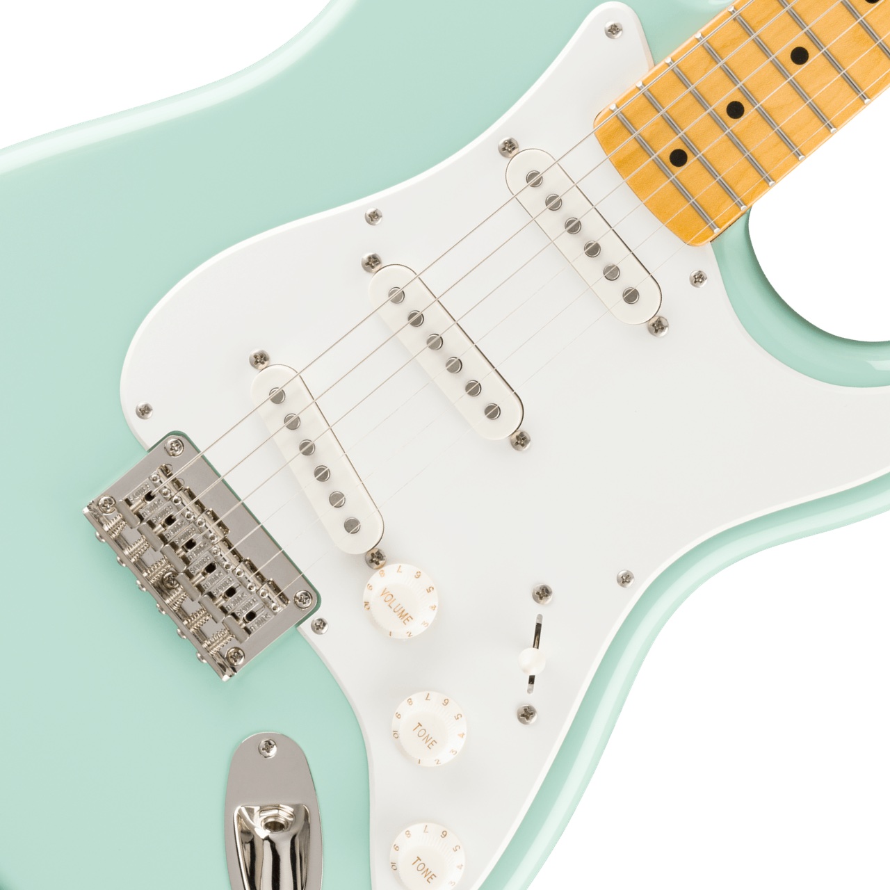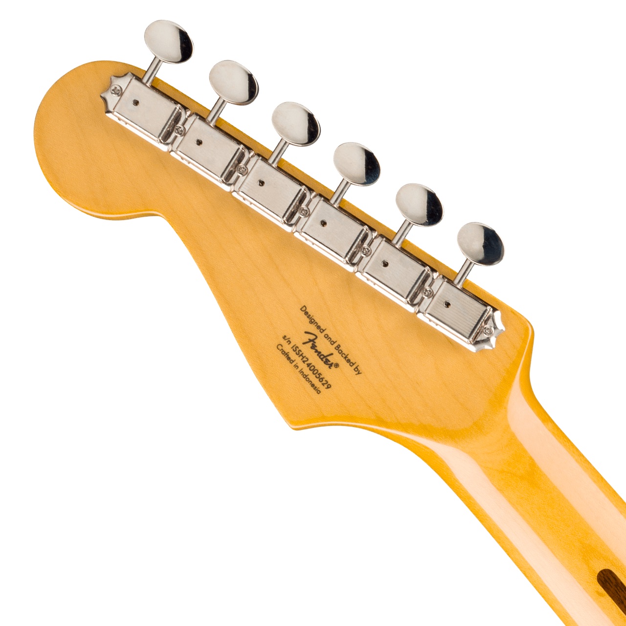 レスポールと並ぶエレキギターの代名詞的存在のストラトキャスター。ちょっとあめ色に着色されたネックがビンテージ感を盛り上げてくれます。ピックアップにはフェンダーデザインのアルニコピックアップを採用。シンクロナイズドトレモロ装備、5wayスイッチ採用でシャープでキレのあるブリッジサウンド、甘いフロントサウンド、枯れたハーフトーンサウンド、ストラトの魅力がたっぷり味わえます。9.5Rの指板、ナロートールのフレット、Cシェイプネックグリップなど今時のフェンダーの弾き心地を継承しています。またブリッジピックアップもトーンコントロール(ミドル兼用)出来るように変更されているのもうれしいポイントです。