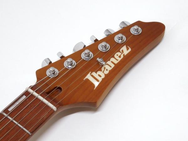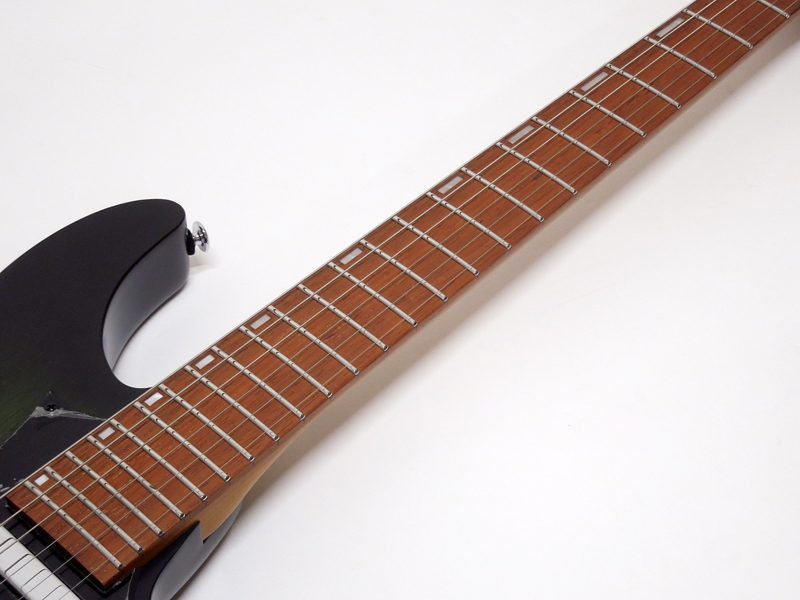 ナトーボディにウォルナットトップ採用。AZ専用 Oval Cシェイプのローステッドメイプルネックにジャトバ指板、ステンレスフレットに蓄光素材の指板インレイ、サイドドットポジションマークの実戦使用です。
