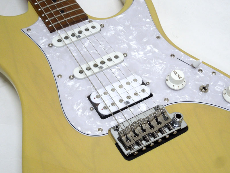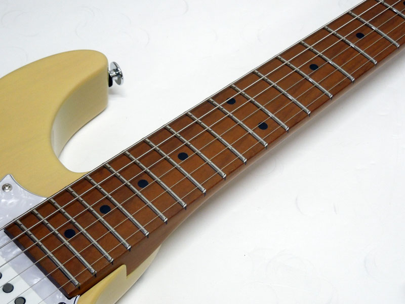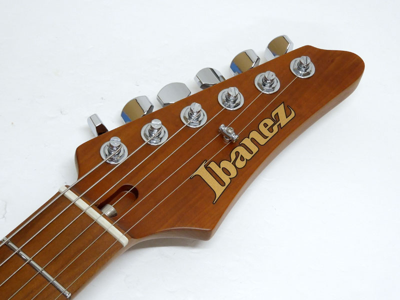 オリジナルのボディ形状を採用したアルダーボディ、エステック処理を施したローステッドメイプルネック&指板、ネック形状は従来のネックより少し厚く設計、弾きやすいオイルフィニッシュ仕上げにしています。Ibanezの薄ネックが苦手な方にも手に馴染むような適度な厚さです。