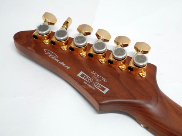 ピックアップにはSeymour Duncan社とのコラボレーションによって生まれたAZ専用ピックアップを搭載。歪ませてもどこかに原音のクリーンさを残す様、出力を抑え気味にして、ピッキングの追従性と再現性にポイントをおいて設計。
