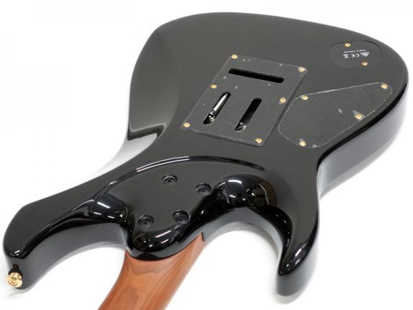 GOTOH製マグナムロックペグ、シンクロトレモロ、ステンレスフレット、ボディのコンターやネックジョイント部の球面仕上げ、蓄光素材のサイドポジションマークなど現代的な演奏性の高さを求めてひと手間ふた手間かけた拘りの感じられる一本。