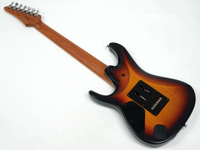 オリジナルのボディ形状を採用したアルダーボディ、エステック処理を施したローステッドメイプルネック&指板、ネック形状は6弦モデルのAZネックを踏襲した共通なスムースな設計、弾きやすいオイルフィニッシュ仕上げにしています。Ibanezの薄ネックが苦手な方にも手に馴染むような適度な厚さです。