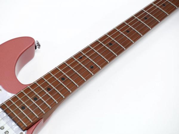 オリジナルのボディ形状を採用したアルダーボディ、エステック処理を施したローステッドメイプルネック&指板、ネック形状は従来のネックより少し厚く設計、弾きやすいオイルフィニッシュ仕上げにしています。Ibanezの薄ネックが苦手な方にも手に馴染むような適度な厚さです。