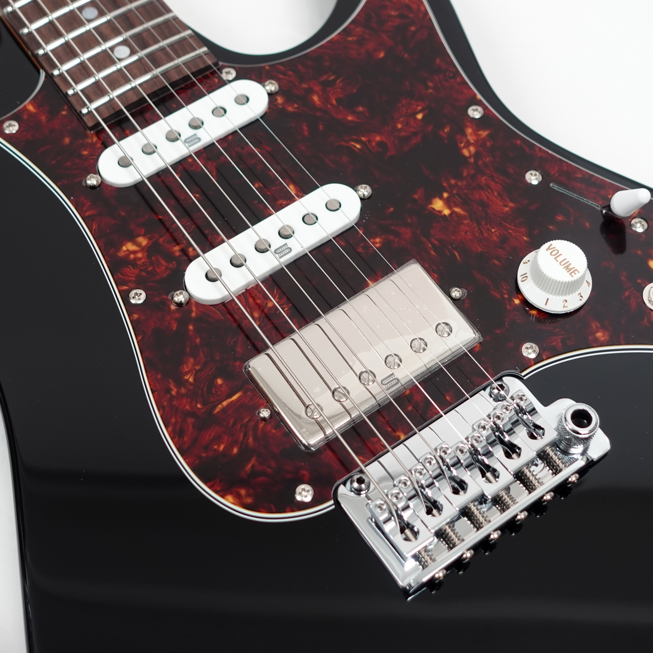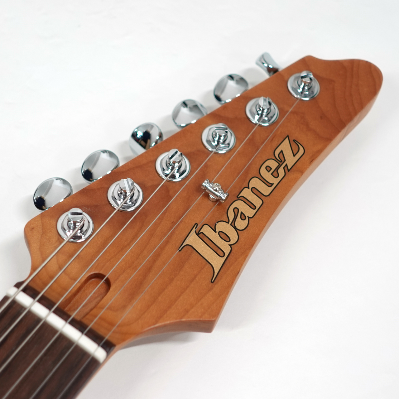 オリジナルのボディ形状を採用したアルダーボディ、エステック処理を施したローステッドメイプルネックにローズウッド指板、ネック形状は従来のネックより少し厚く設計、弾きやすいオイルフィニッシュ仕上げにしています。Ibanezの薄ネックが苦手な方にも手に馴染むような適度な厚さです。指板はコンパウンドラジアスを採用しスムーズな演奏性を提供します。