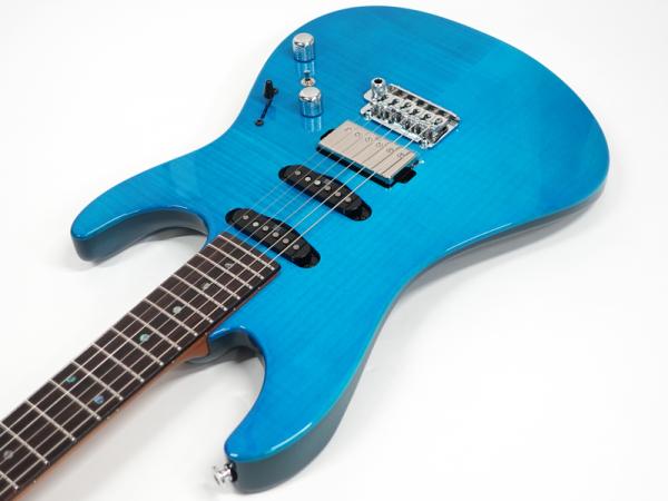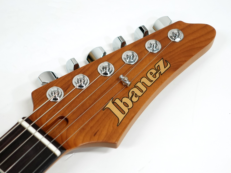オリジナルのボディ形状を採用したマホガニーボディにフレイムメイプルトップを採用。エステック処理を施したローステッドメイプルネックにローズウッド指板、ネック形状はMM1のアーティスト仕様ネックと異なり、レギュラーのAZ Oval Cシェイプを採用、弾きやすいオイルフィニッシュ仕上げにしています。Ibanezの薄ネックが苦手な方にも手に馴染むような適度な厚さです。指板はコンパウンドラジアスを採用しスムーズな演奏性を提供します。