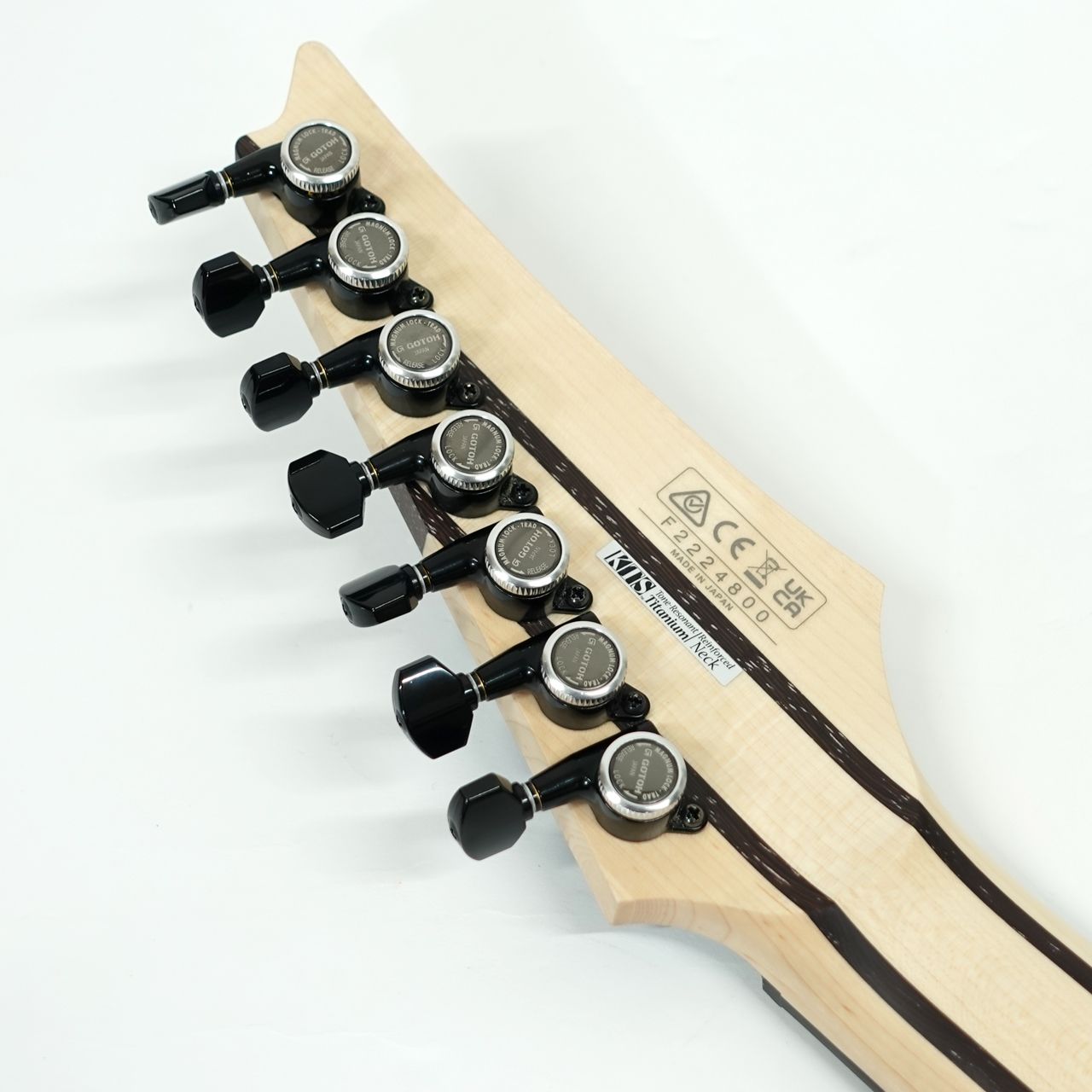 5pcのメイプル材と硬質なウェンジ材とで構成した“Wizard”シェイプの7弦ネック