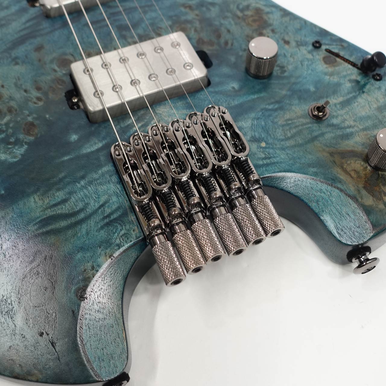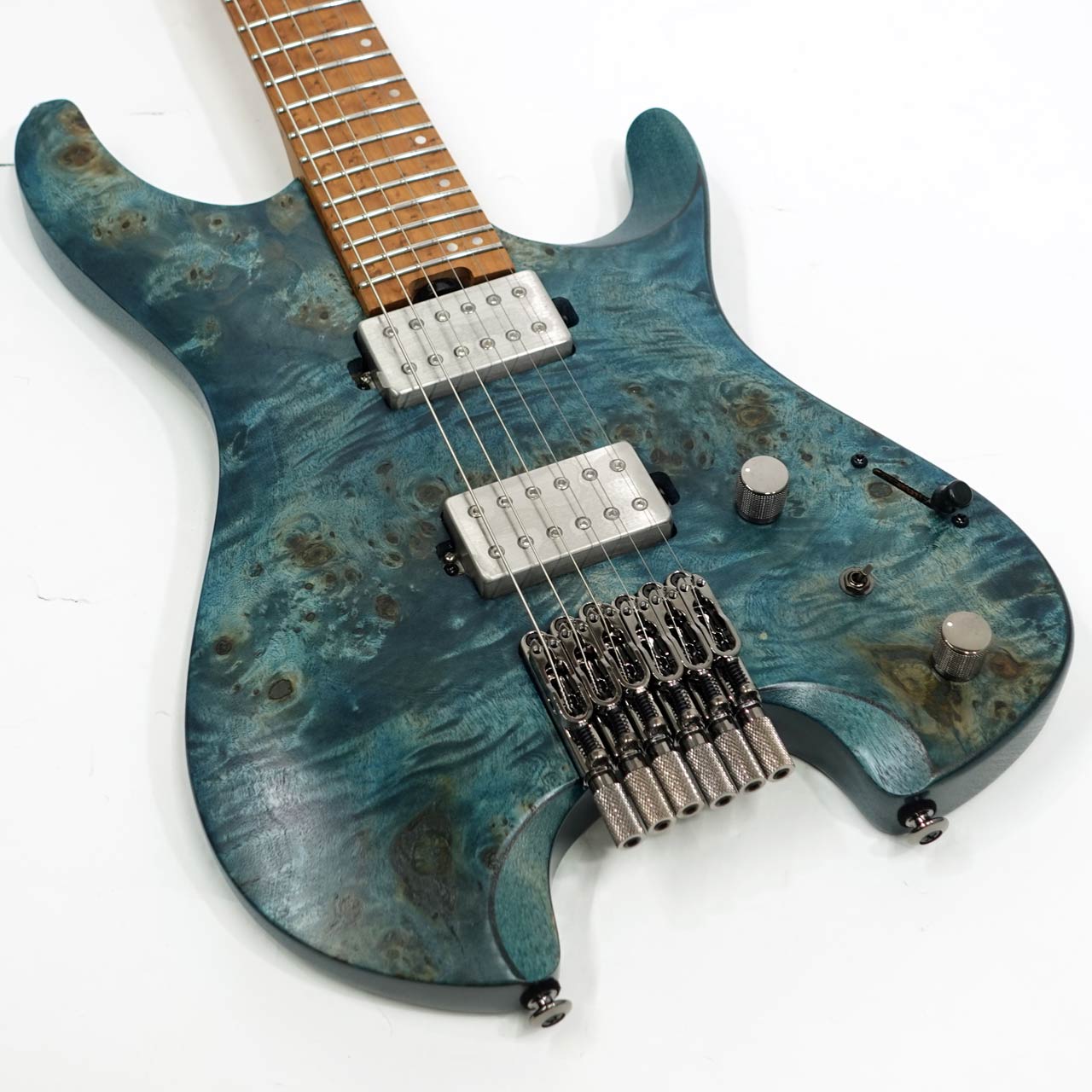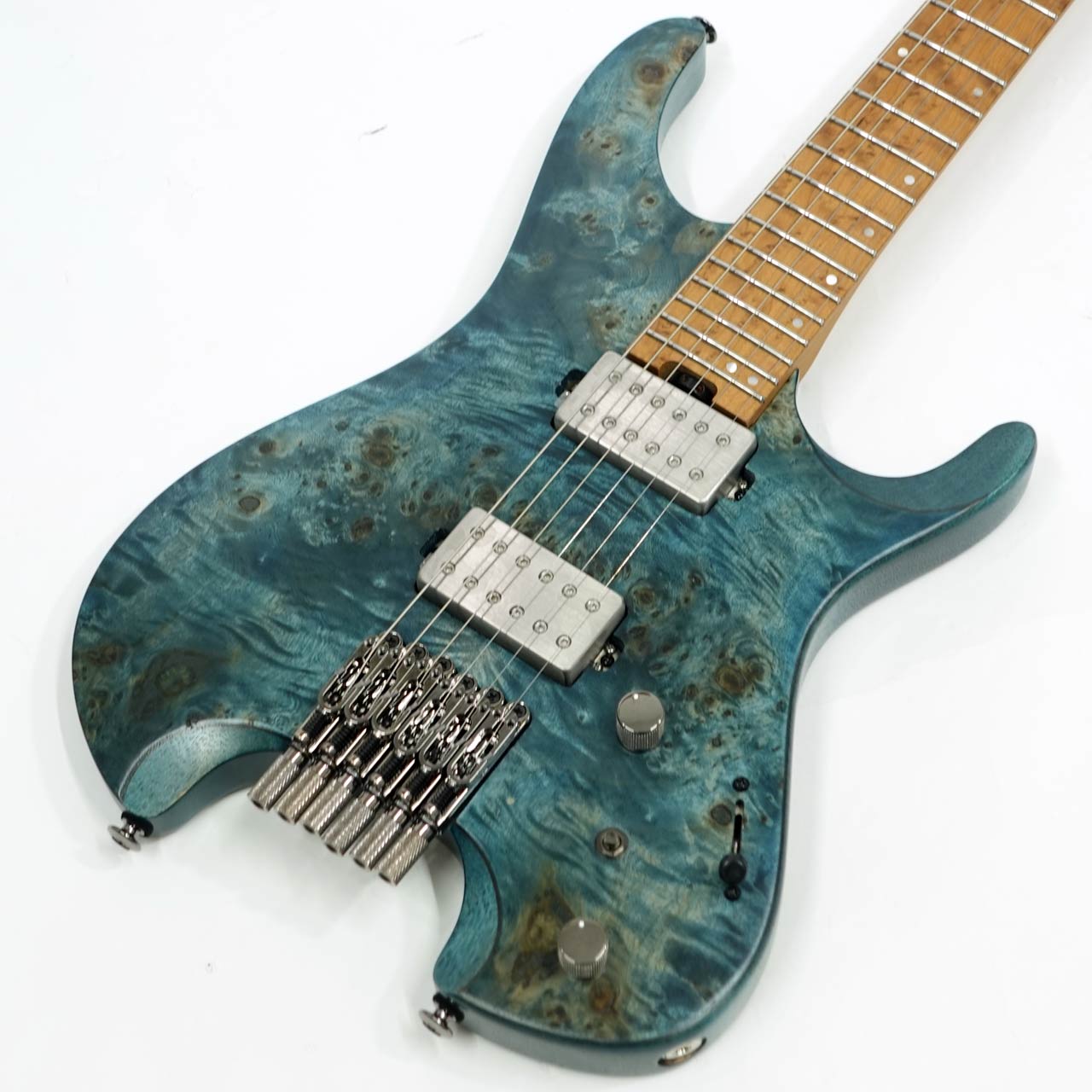 ローステッドメイプルとブビンガの硬質な3Pネックにローステッドバーズアイメイプル指板、ネックシェイプは様々な演奏スタイルに対応できる厚すぎず薄すぎない、馴染みやすいネックです。フレットにはジャンボステンレスフレットを採用し高い耐久性を持ちます。