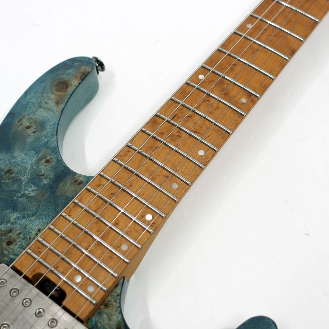 fretboard Roasted Birdseye Maple fretboard Mother of Pearl Step off-set dot inlay