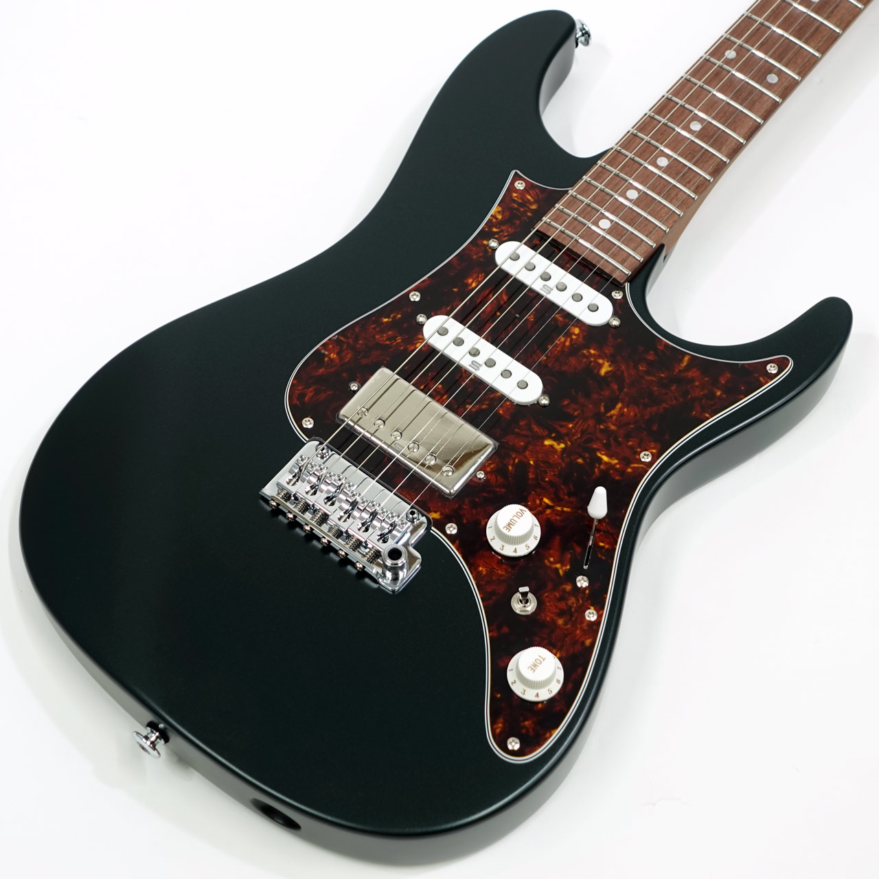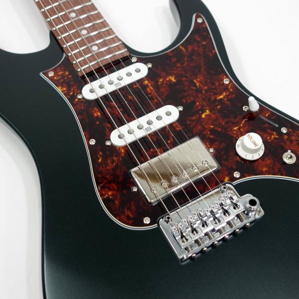 オリジナルのボディ形状を採用したアルダーボディ、エステック処理を施したローステッドメイプルネックにローズウッド指板、ネック形状は従来のネックより少し厚く設計、弾きやすいオイルフィニッシュ仕上げにしています。Ibanezの薄ネックが苦手な方にも手に馴染むような適度な厚さです。指板はコンパウンドラジアスを採用しスムーズな演奏性を提供します。