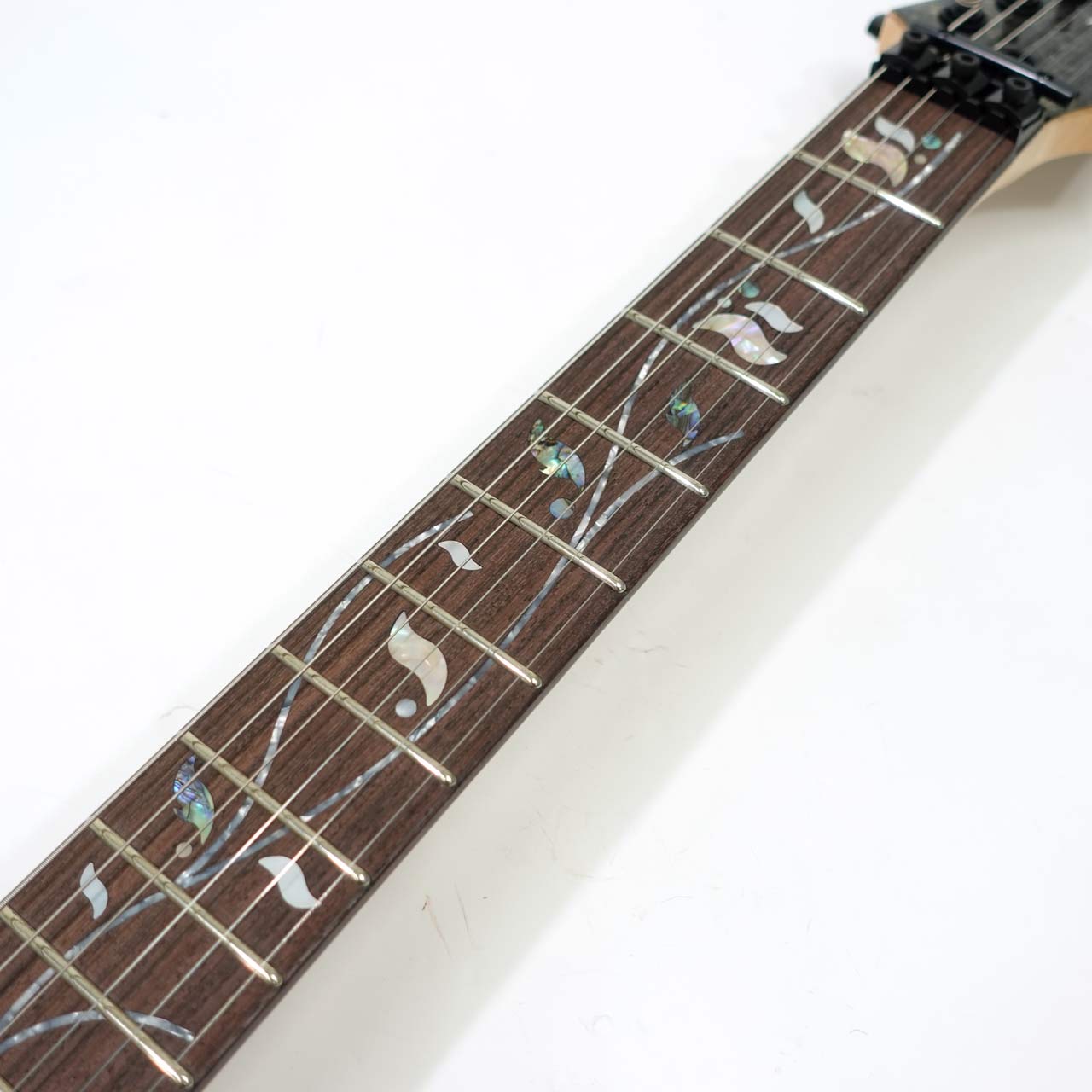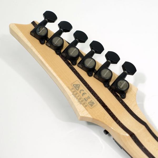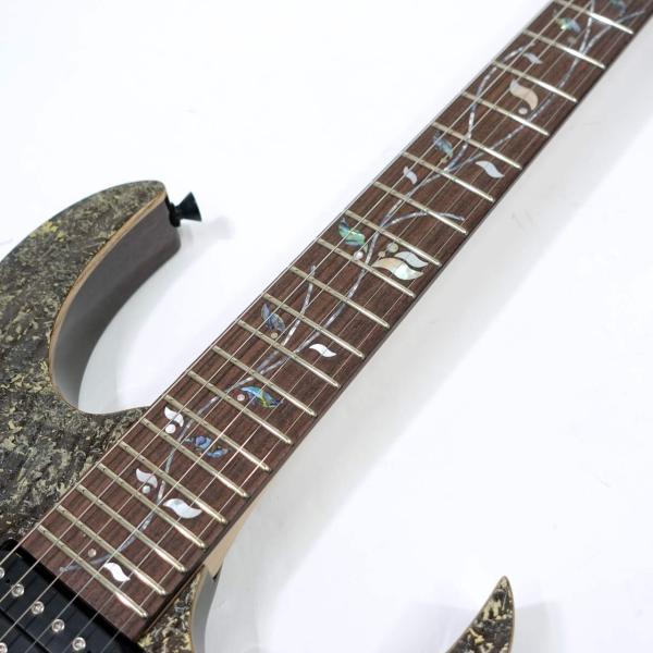 ボディにはアフリカンマホガニーに4mm厚アッシュトップ。ローズウッド指板にはツリーオブライフのゴージャスなインレイ、ルックスはもちろん素材、つくりも最高峰にふさわしいRGです。