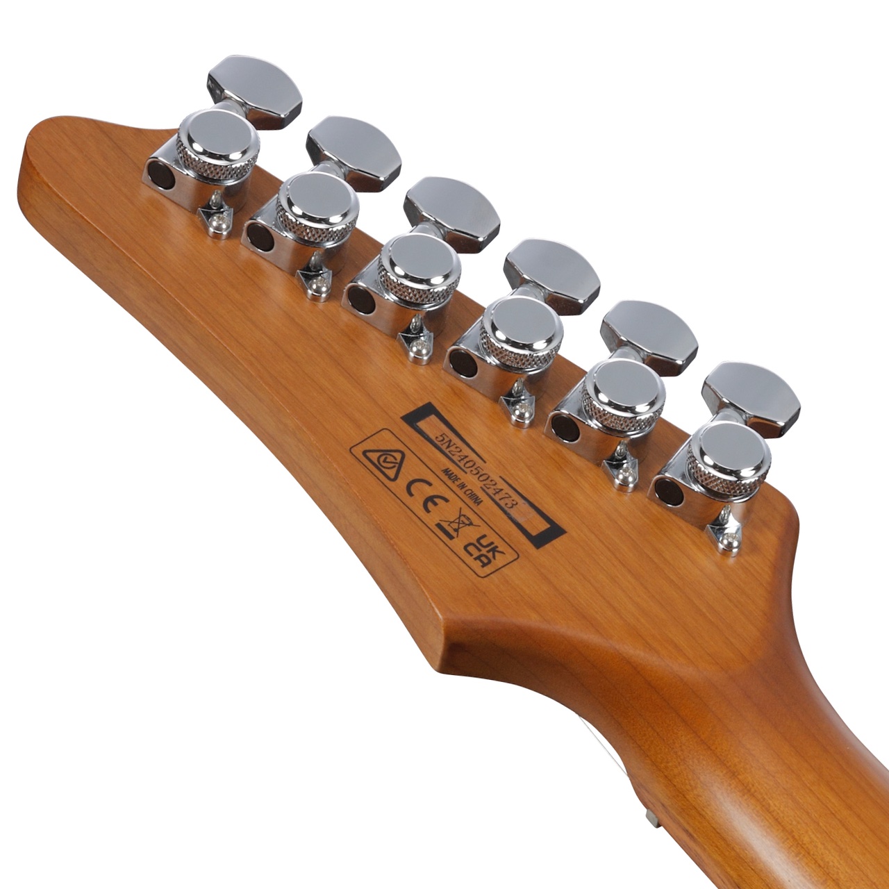 加熱処理されたメイプル材をネック材に使用しています。加熱処理をすることで、形状安定性、反りに対する耐久性、耐水性、温度変化に強いといった効果を期待できます。