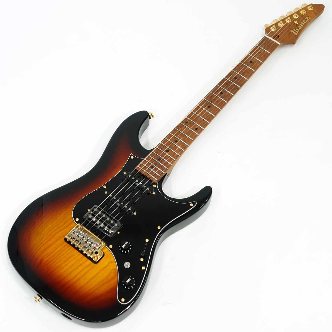 オリジナルのボディ形状を採用したボディ、エステック処理を施したローステッドメイプルネック&指板、ネック形状は従来のネックより少し厚く設計、弾きやすいオイルフィニッシュ仕上げにしています。Ibanezの薄ネックが苦手な方にも手に馴染むような適度な厚さです。