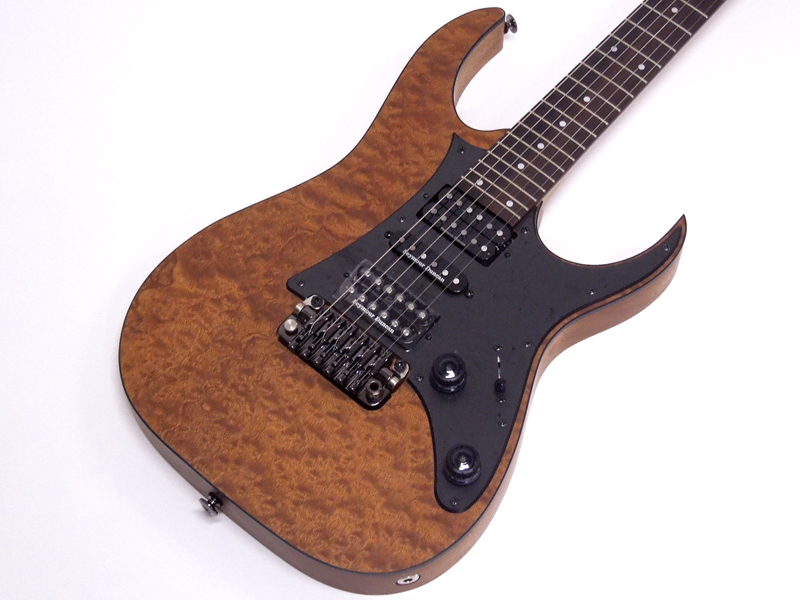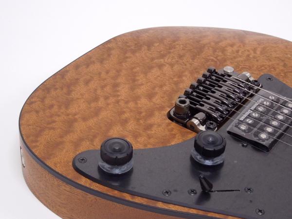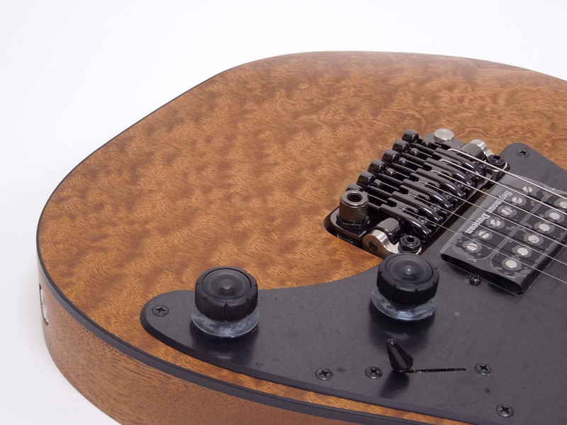 ウッディでエキゾチックな風合い漂うバール(瘤)杢のマホガニー・バール材トップ、中低音域特性に優れファットなトーンを生み出すマホガニー・ボディ。
