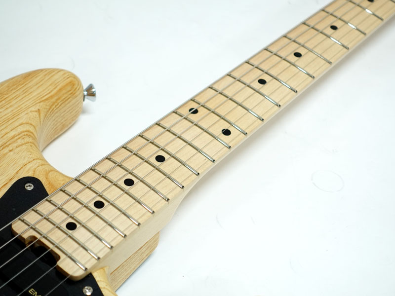 アッシュの杢目が楽しめる艶消しナチュラル仕上げ。鍔出しの22フレット仕様、ネックジョイント部のホイールナットでトラスロッドの調整も簡単です。