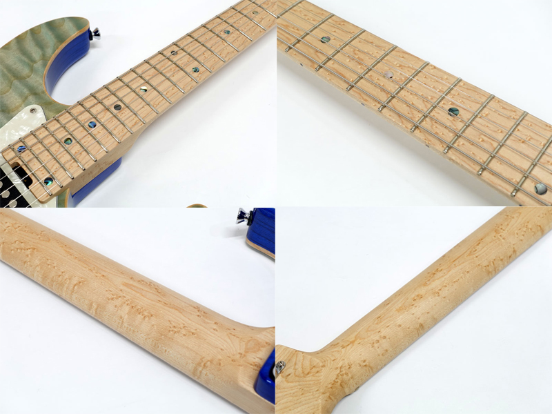 最高グレードの5Aキルトメイプルトップにバーズアイメイプルネック&指板を合わせた当店オーダーモデルが入荷です。