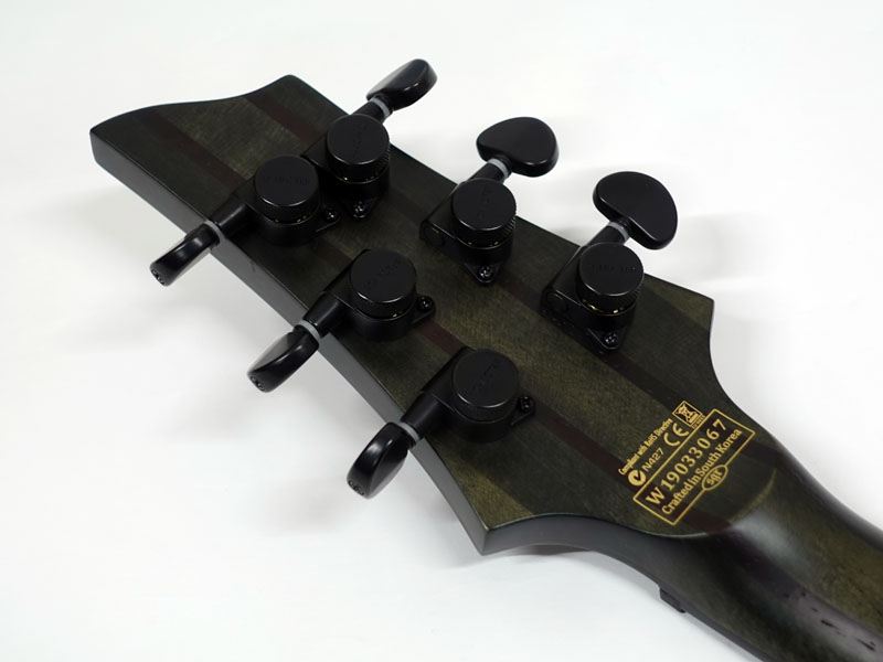ボディにはスワンプアッシュ、ネックにはメイプルと硬質なパドゥークのマルチプライネック、エボニー指板を採用。コンパウンドラジアス指板でハイフレットまで高い演奏性を持ちます。