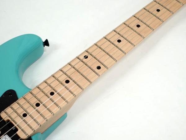 アルダーボディ、メイプルネック&指板、ヴィンテージスタイルながらシェクターらしさを詰め込んだ一本。鍔出しの22フレット仕様、ネックジョイント部のホイールナットでトラスロッドの調整も簡単です。