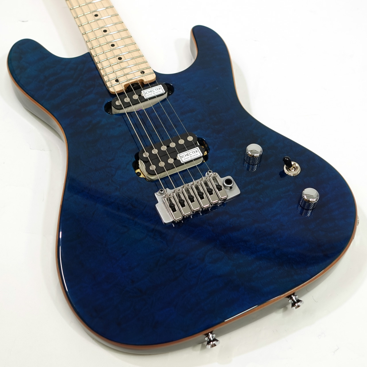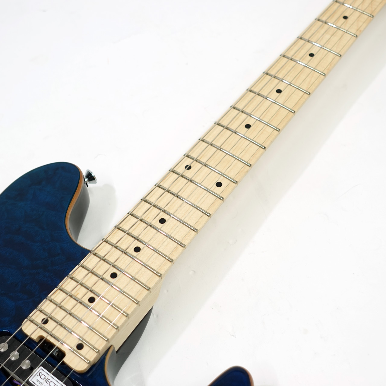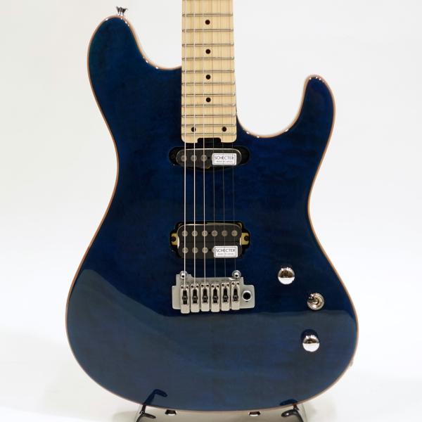 アルダーボディにキルトメイプルトップ、メイプル指板のシェクターの定番スタイル。