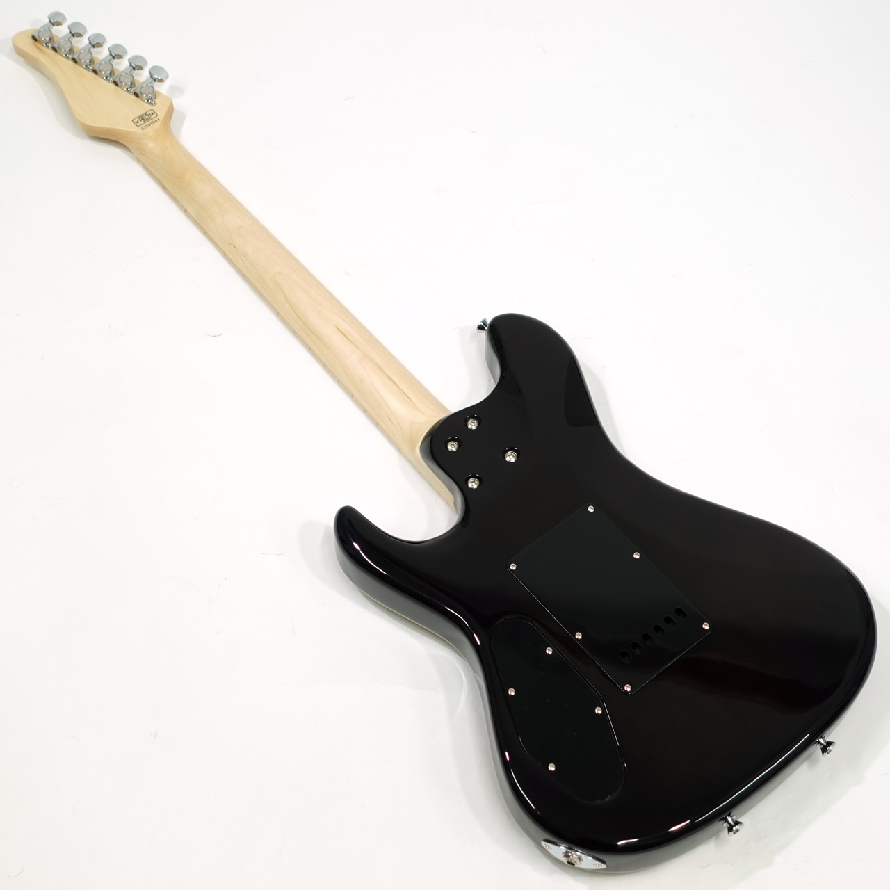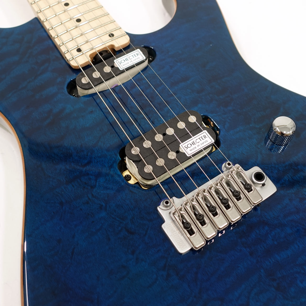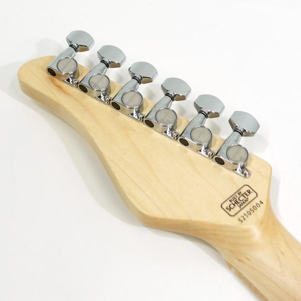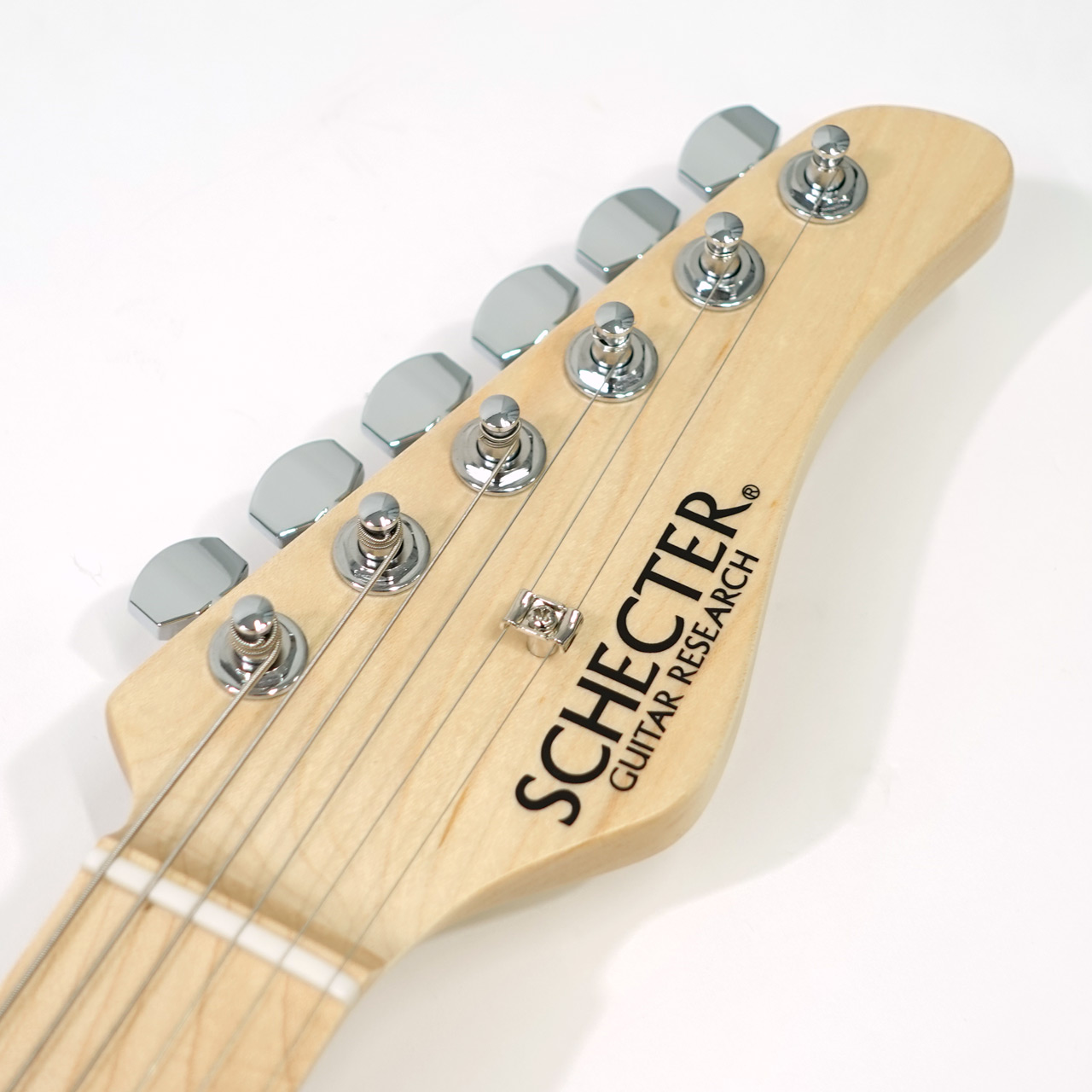 アルダーボディにキルトメイプルトップ、メイプル指板のシェクターの定番スタイル。