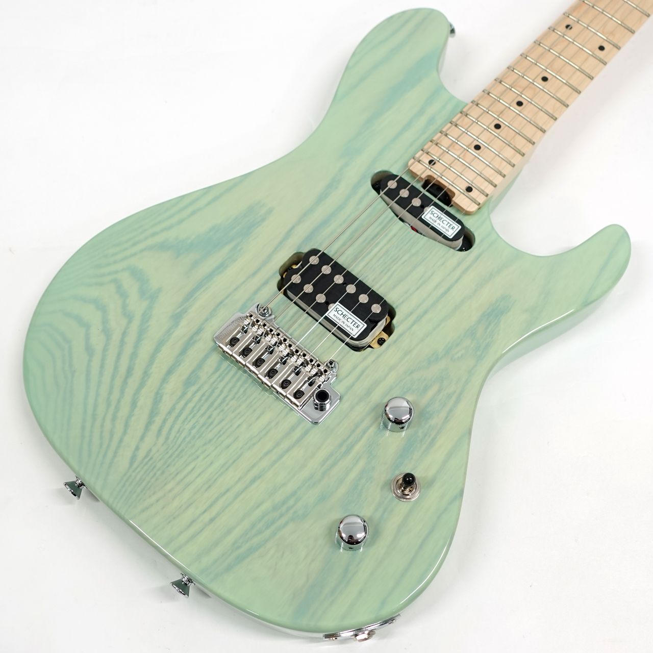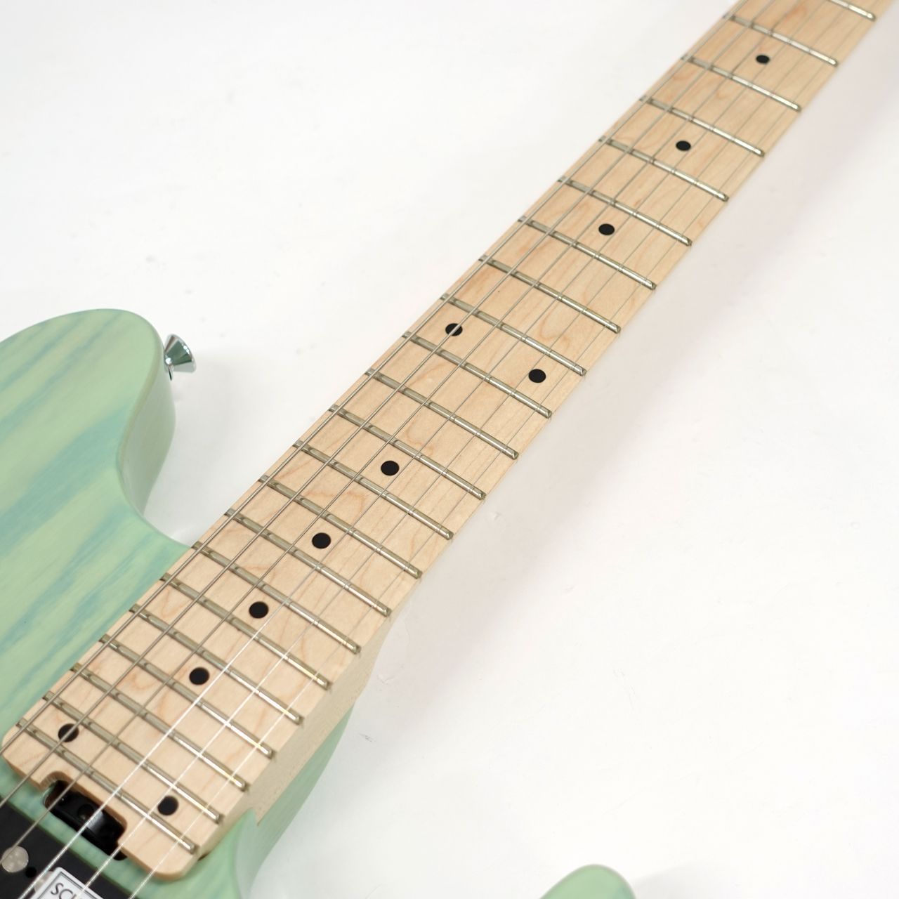 アッシュボディ、メイプルネック、メイプル指板、24.75インチスケール採用。