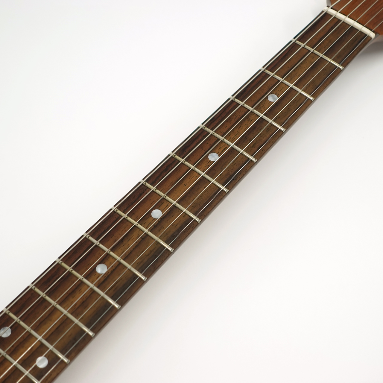 ボディにマホガニー、ローステッドメイプルネックのローズウッド指板を採用。