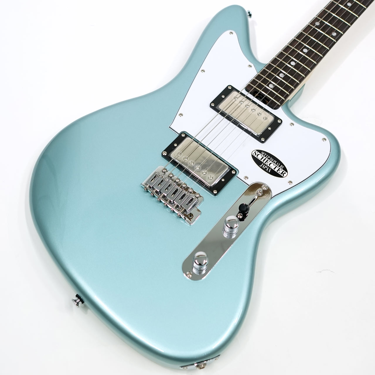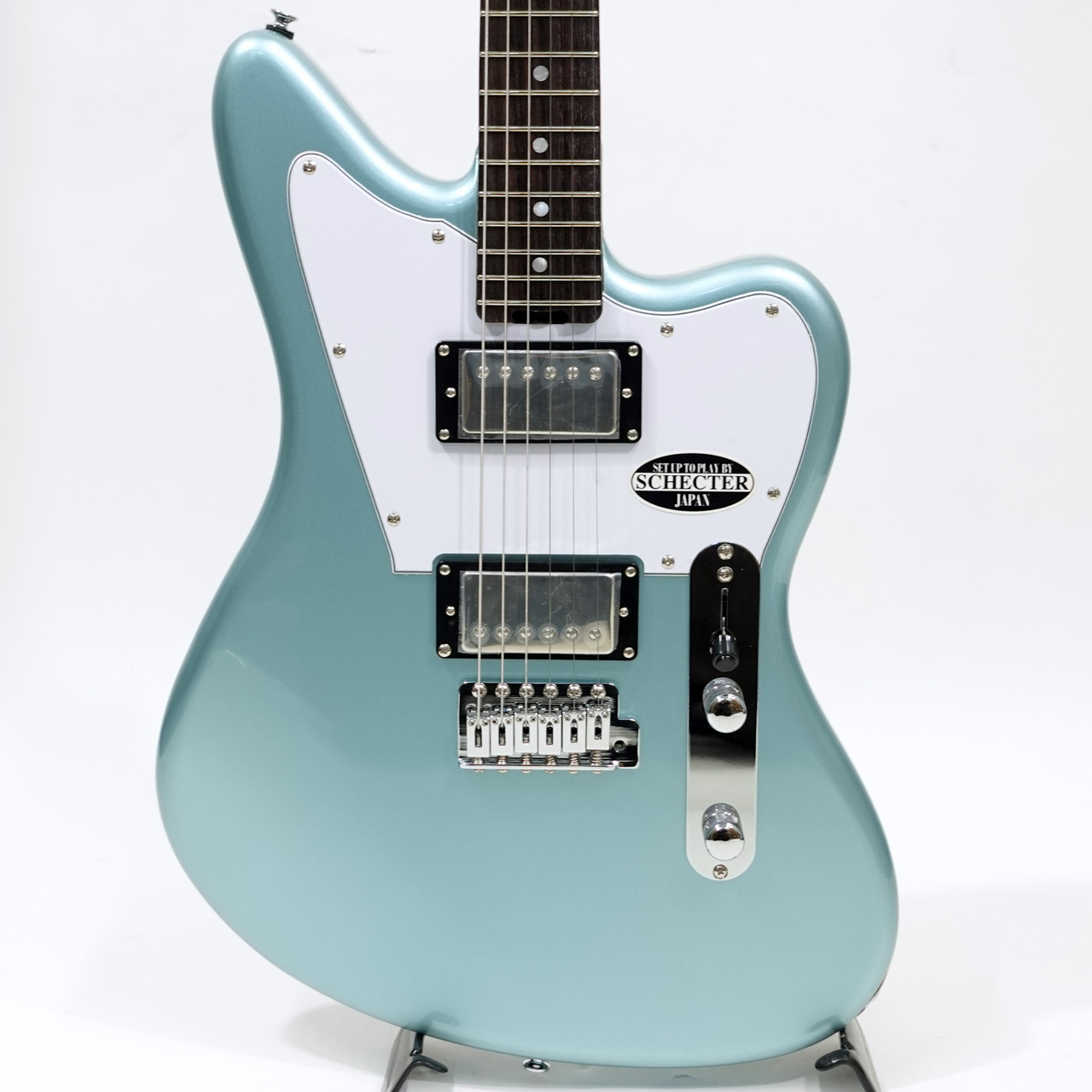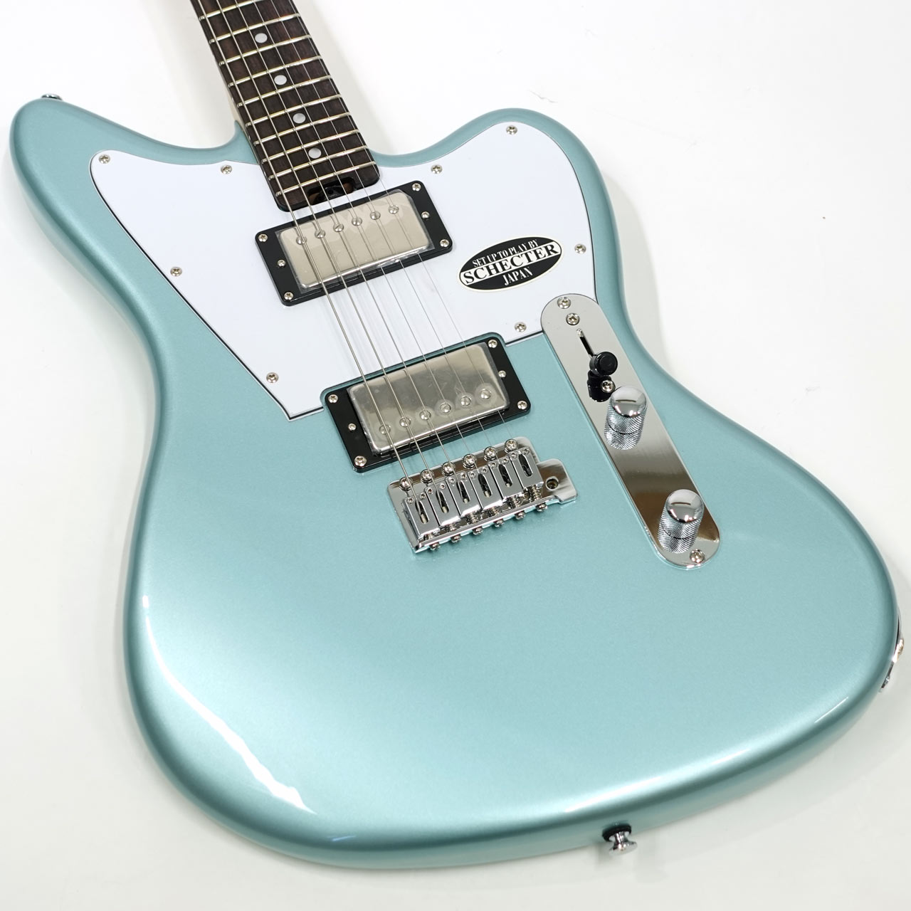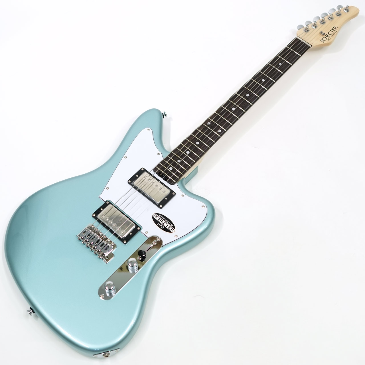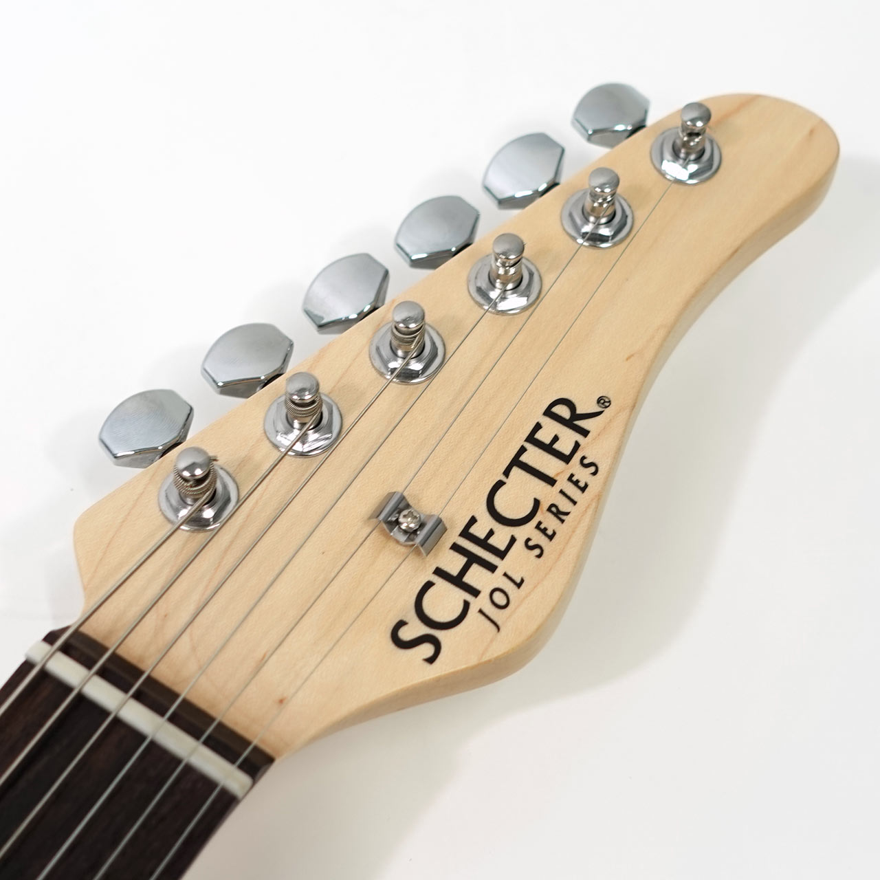 アルダーボディ、メイプルネック、ローズウッド指板。薄めのネックでこの価格ながらシェクターらしいプレイアビリティが特徴です。