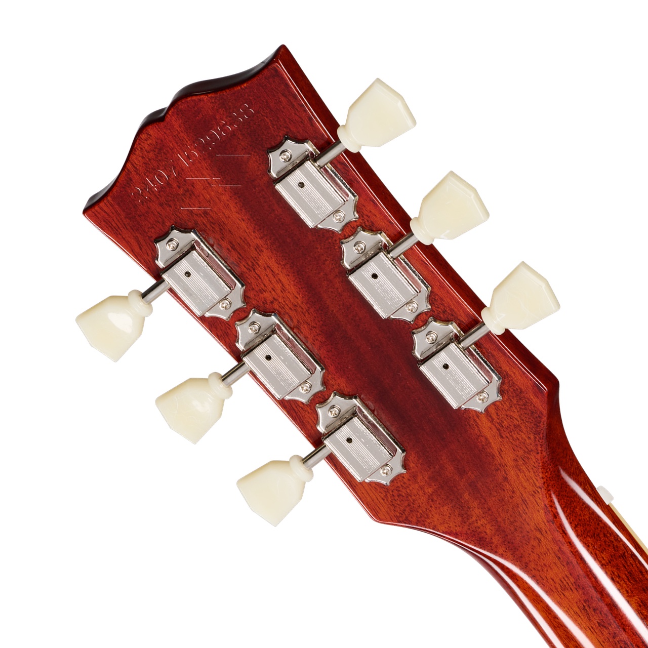 フィニッシュには、深みのある風合いを演出するヴィンテージ・グロスを採用。ニッケル・ハードウェアとの組み合わせが、美しいヴィンテージの風格を演出します。チューナーには、Epiphone Deluxe “シングルリング” キーストン・ボタン・チューナーを搭載。