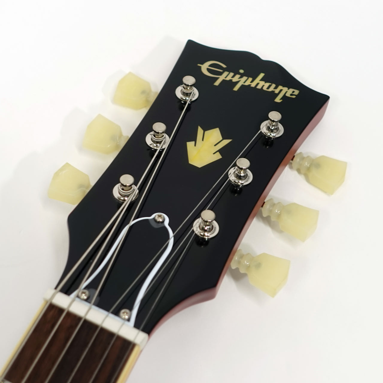 ヘッドストックにはGibsonスタイルの“オープンブック”デザインを採用し、EpiphoneロゴとGibsonクラウン・インレイをエイジド・マザー・オブ・パールで装飾。チューナーにはEpiphone Deluxeチューナー(ダブルリング・キーストーン・ボタン付き)を搭載し、Graph Techナットとともにスムーズなチューニングを実現します。